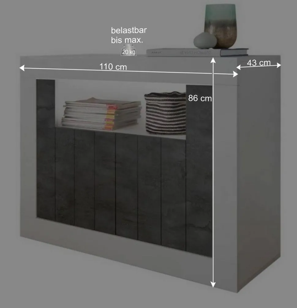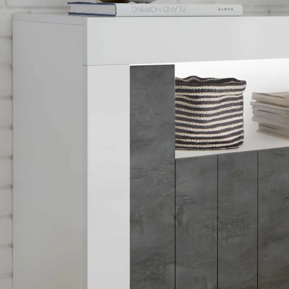 - Attraktives Sideboard in Weiß Hochglanz und Dunkelgrau