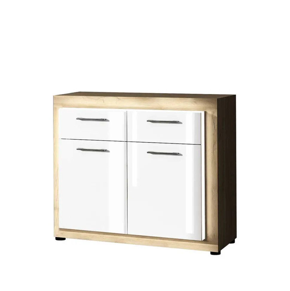 - Moderne Kommode in Wildeichefarben und Weiß Hochglanz