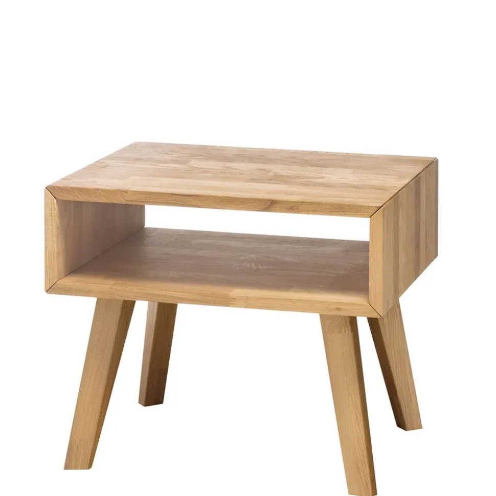 Für noch mehr Komfort und Stil können Sie optional einen passenden Nachttisch bestellen. Dieser ist aus massivem, geöltem Eichenholz gefertigt, misst 50x42x41 cm und bietet ein offenes Fach für Ihre persönlichen Utensilien. Mit einem stabilen Vierfußgestell und einer maximalen Belastbarkeit von 15 kg ist dieser Nachttisch die ideale Ergänzung für Ihr Schlafzimmer.