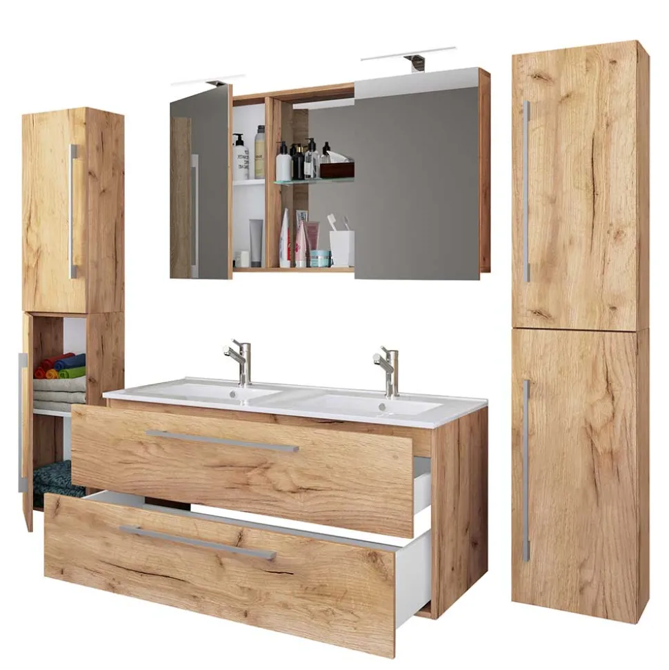 - Erstklassiges Badmöbel Set in Wildeiche Honigfarben