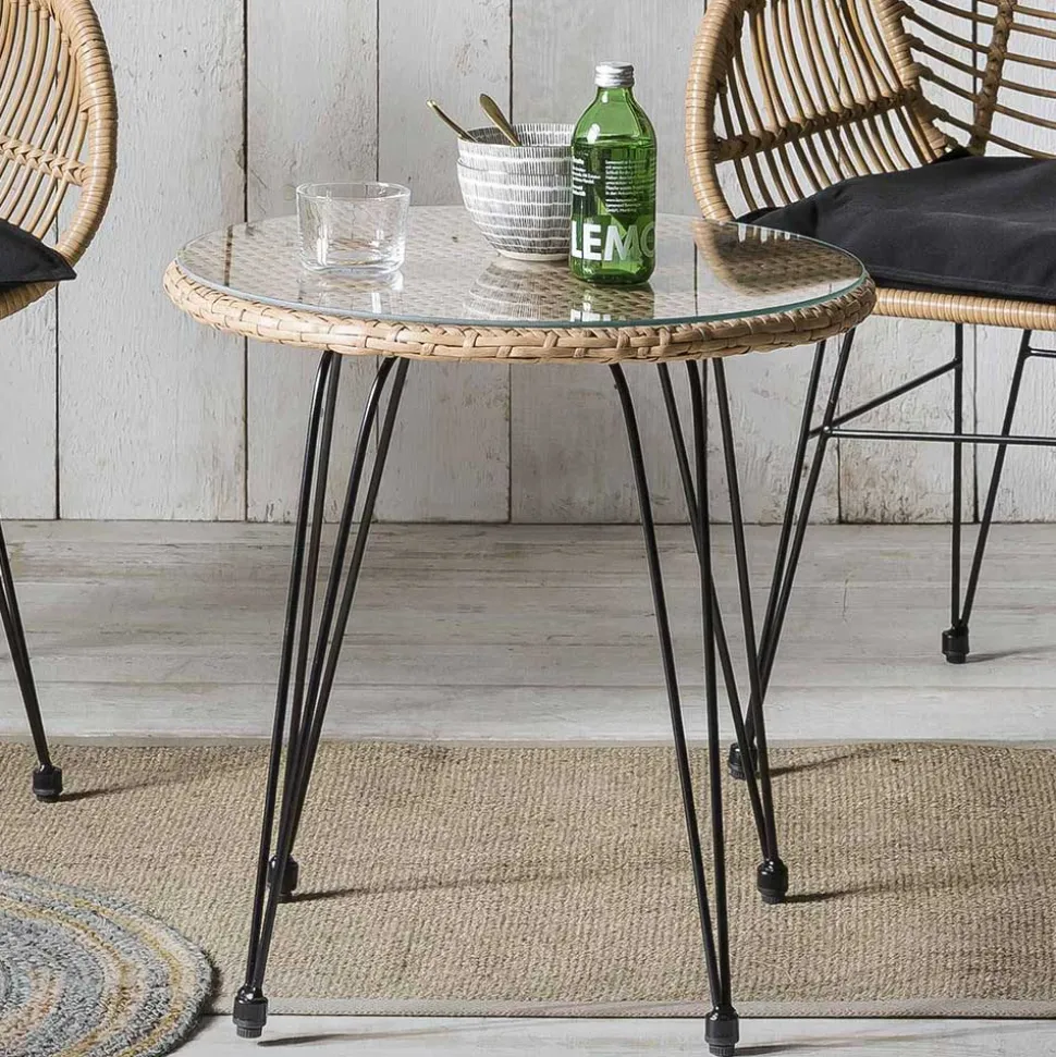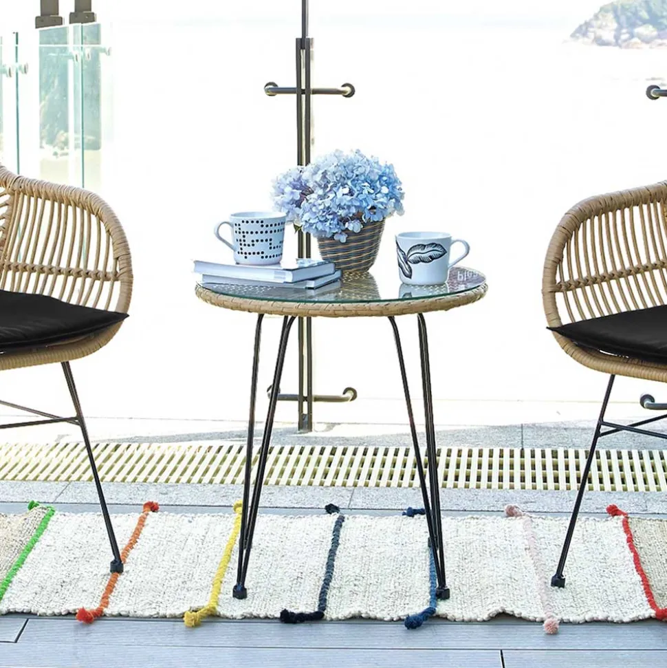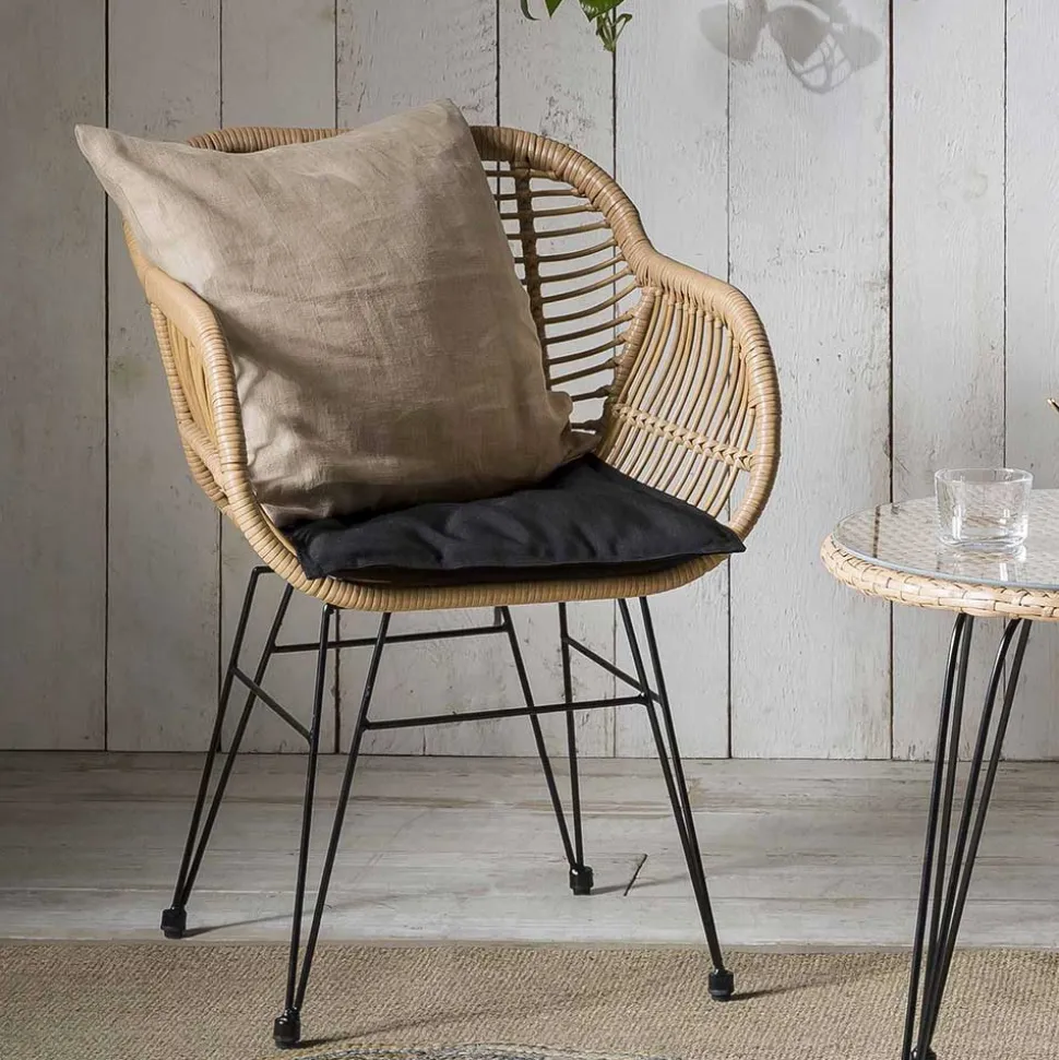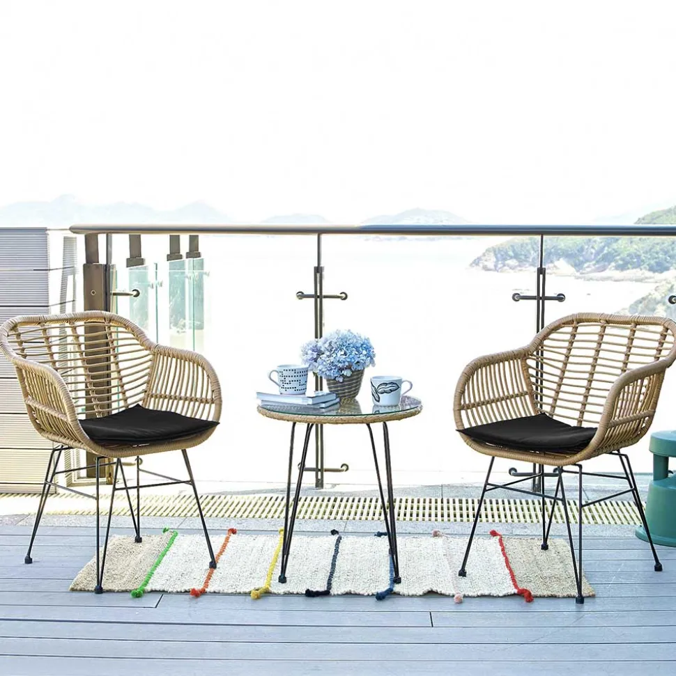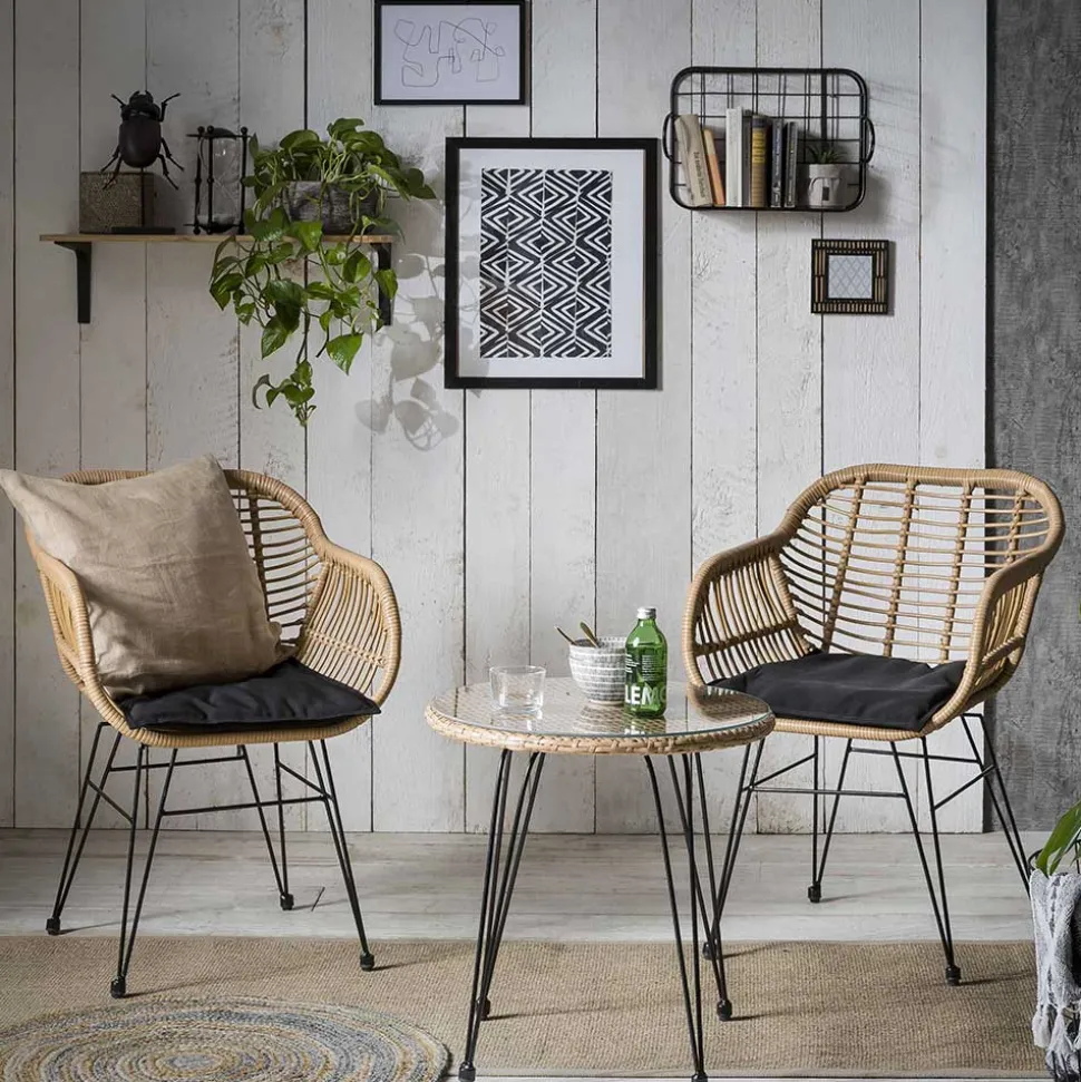 - Aus Kunstrattan, Stahl und Webstoff hergestellt