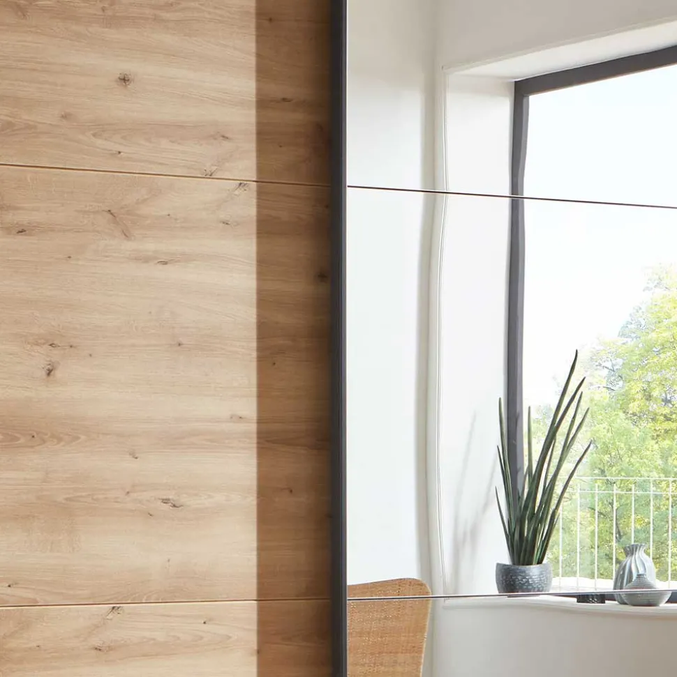 Die klare Formensprache, kombiniert mit dem großzügigen Ganzkörperspiegel an der rechten Türfront, lässt den Schwebetürenschrank zu einem echten Highlight in Ihrem Schlafzimmer werden. Dank der leichtgängigen Schwebetüren mit hoch belastbaren Beschlägen haben Sie optimalen Zugriff auf den Stauraum des Schranks.