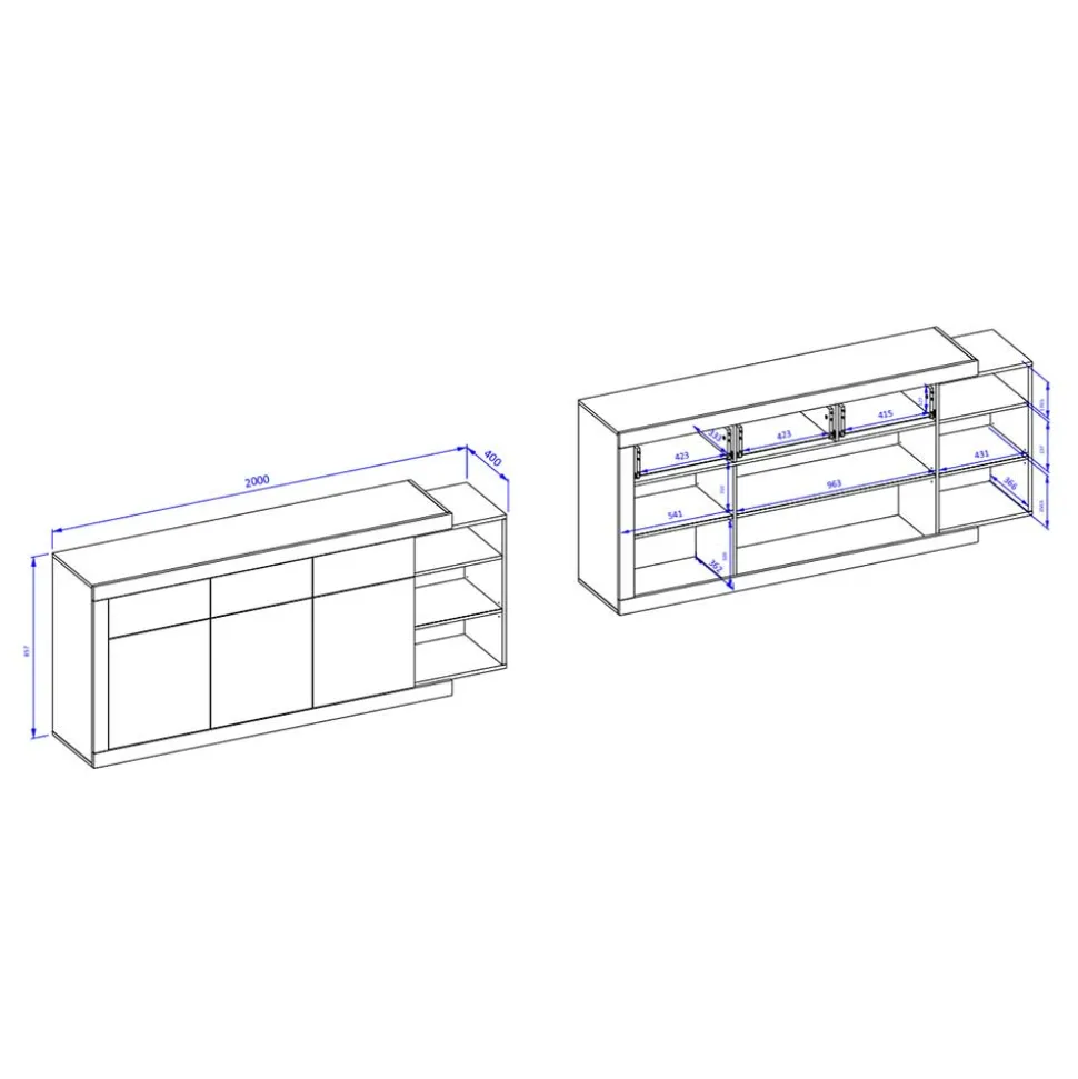 Ein echtes Highlight sind die drei offenen Fächer an der Seite – in schwebender Anmutung gestaltet, bieten sie den perfekten Platz für dekorative Elemente, Lieblingsbücher oder Designobjekte. Sie bringen Leichtigkeit ins Gesamtbild und laden zur individuellen Gestaltung ein. So wird Milvara nicht nur zum funktionalen Möbelstück, sondern zum Ausdruck Ihrer Persönlichkeit.