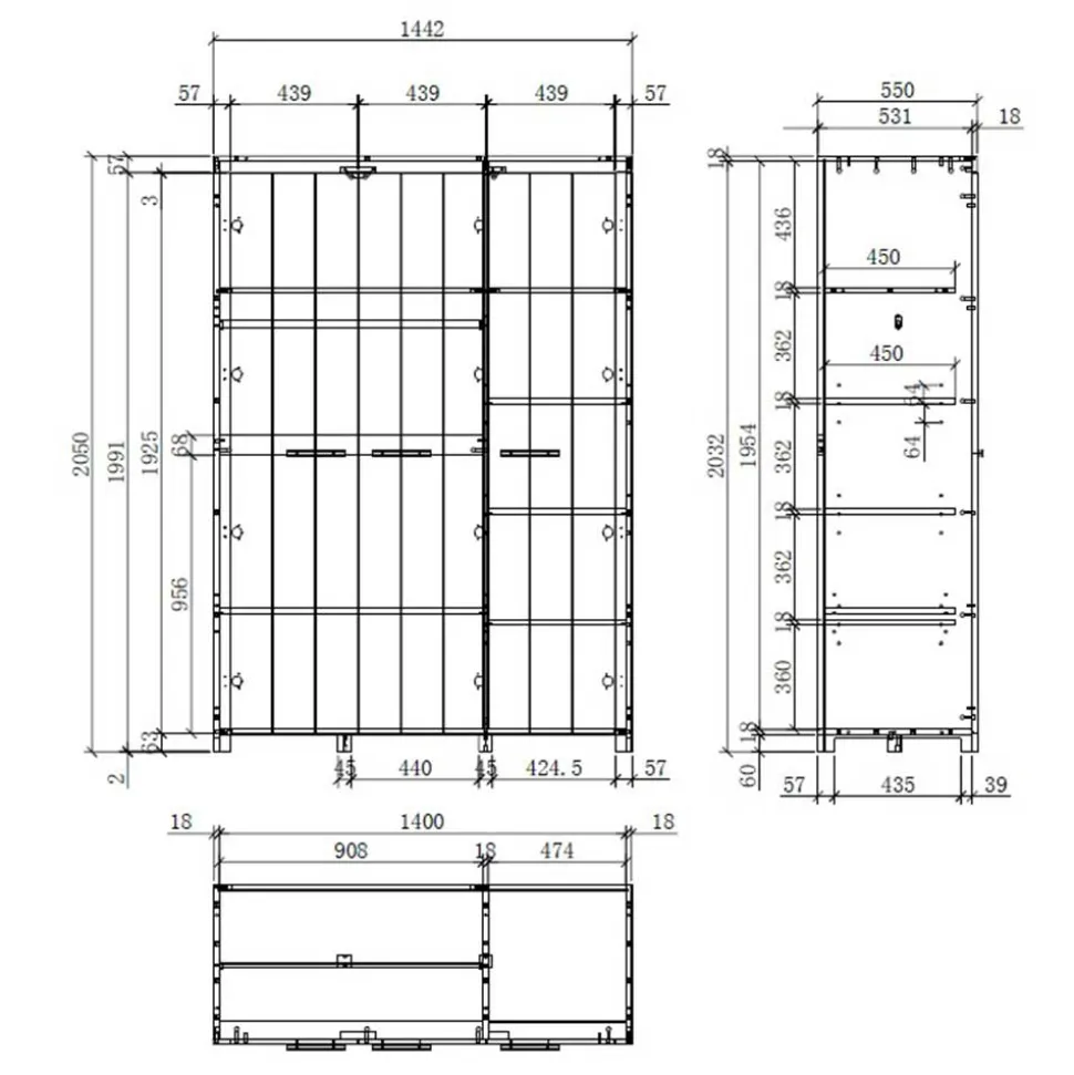 - 145 cm Breit, 205 cm Hoch, 55 cm Tief