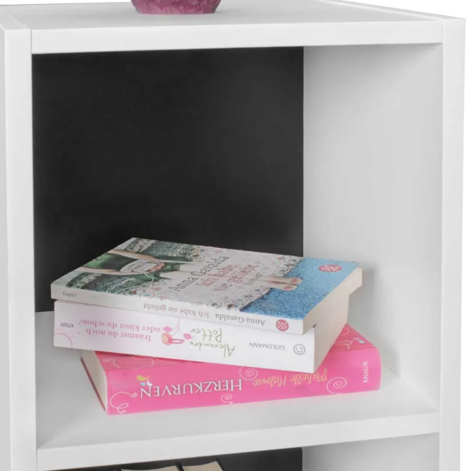 - Kleines Standregal in Weiß mit schwarzer Rückwand