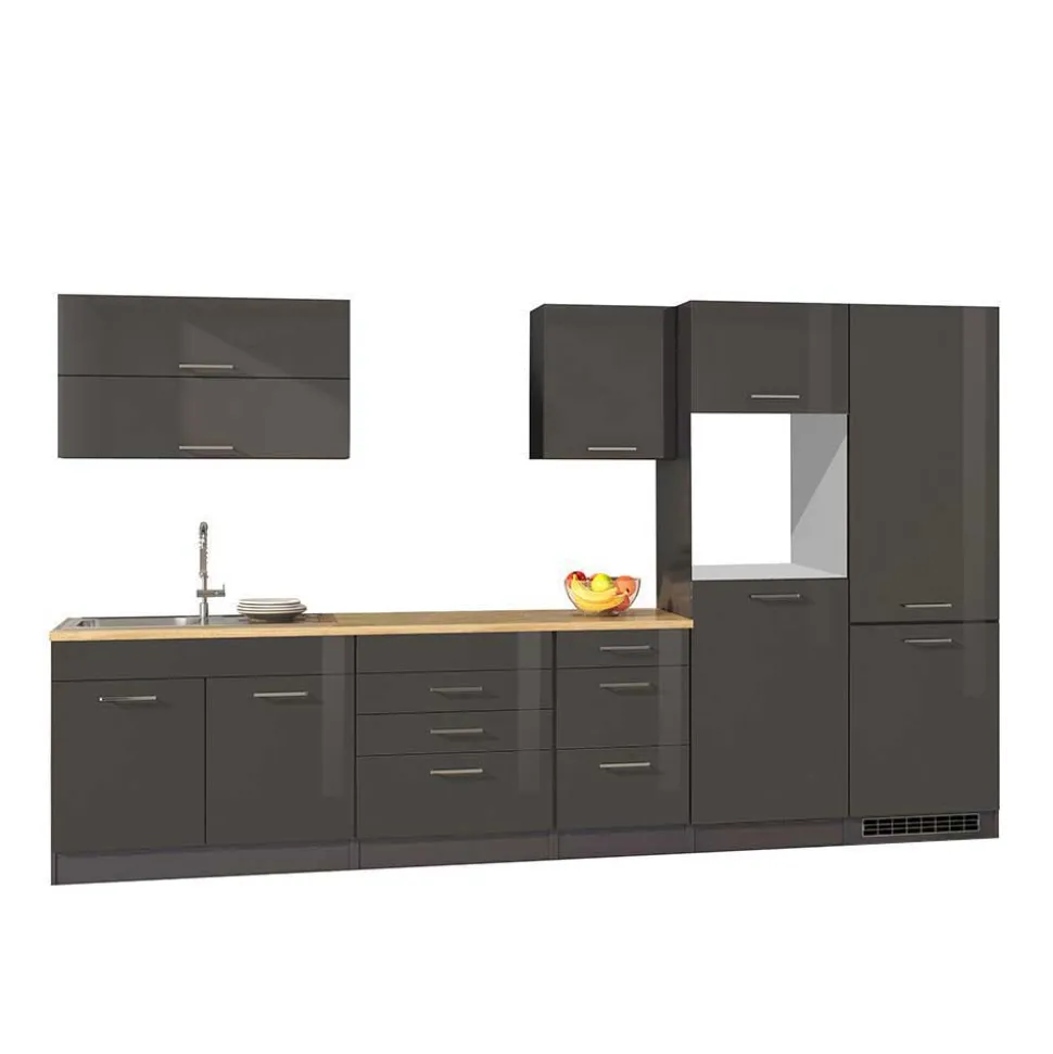 - Trendige Küchenzeile in Grau Hochglanz und Sonoma Eiche