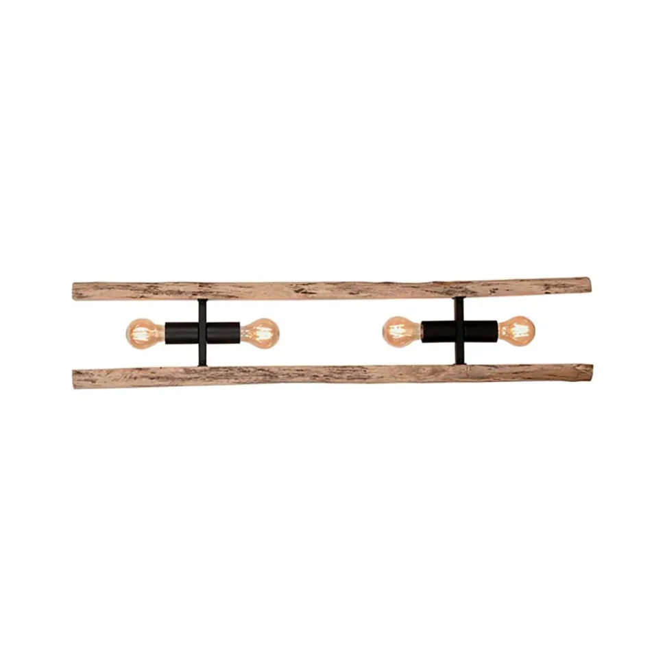 - Lampenschirm aus unbehandeltem Massivholzbalken und Metallstreben