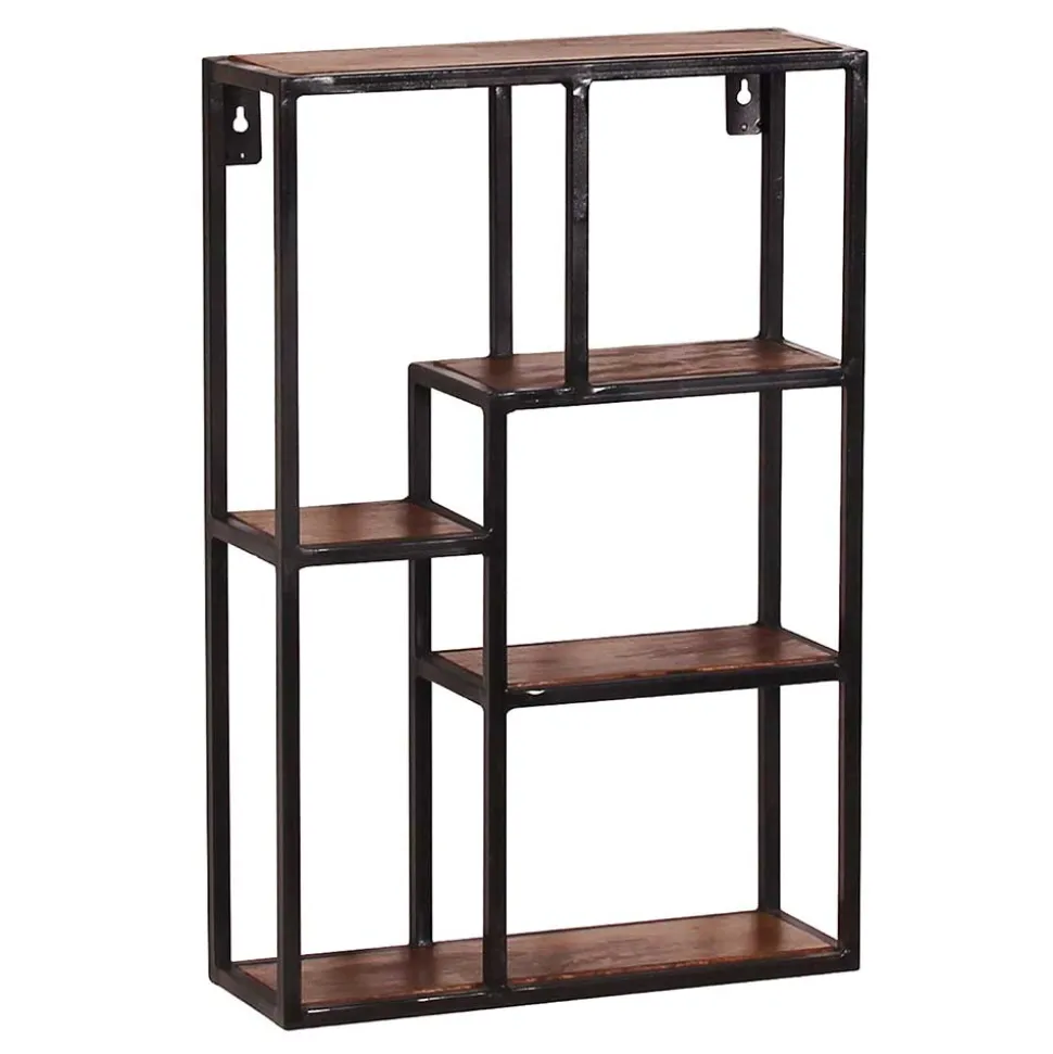 - Interessantes Hängeregal in Mangoholz Naturfarben und Antikschwarz