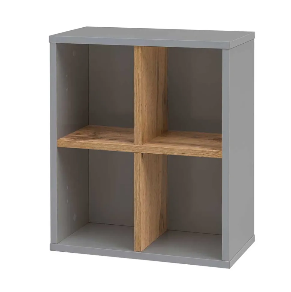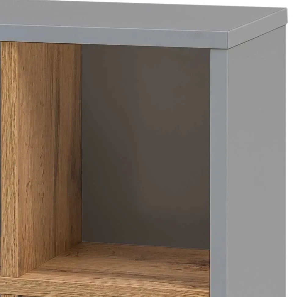 - Kompaktes Wandregal in Platingrau und Eichefarben
