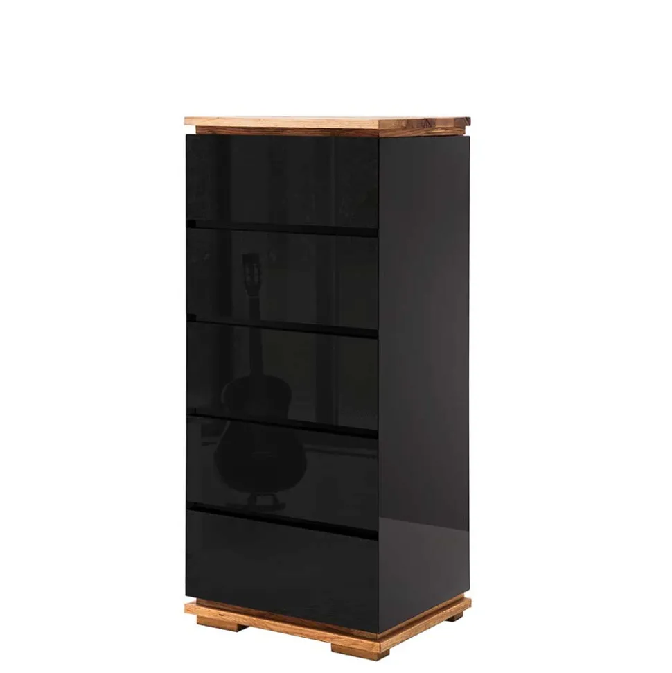 - Elegante Hochkommode in Schwarz Hochglanz und Eichefarben