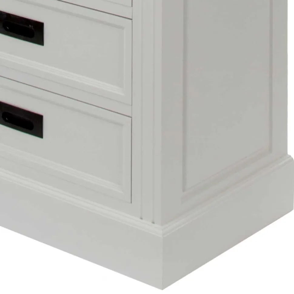 Drei geräumige Schubladen mit leichtgängigen Holzschienen und formschönen schwarzen Griffmulden aus Kunststoff bieten zusätzlichen Platz für Dinge, die Sie stilvoll verstauen möchten. Das geschlossene Sockelgestell sorgt nicht nur für eine harmonische Gesamtoptik, sondern gibt dem Möbel zusätzliche Standfestigkeit und Stabilität. Für mehr Sicherheit empfehlen wir eine Kippsicherung – besonders in Haushalten mit Kindern.