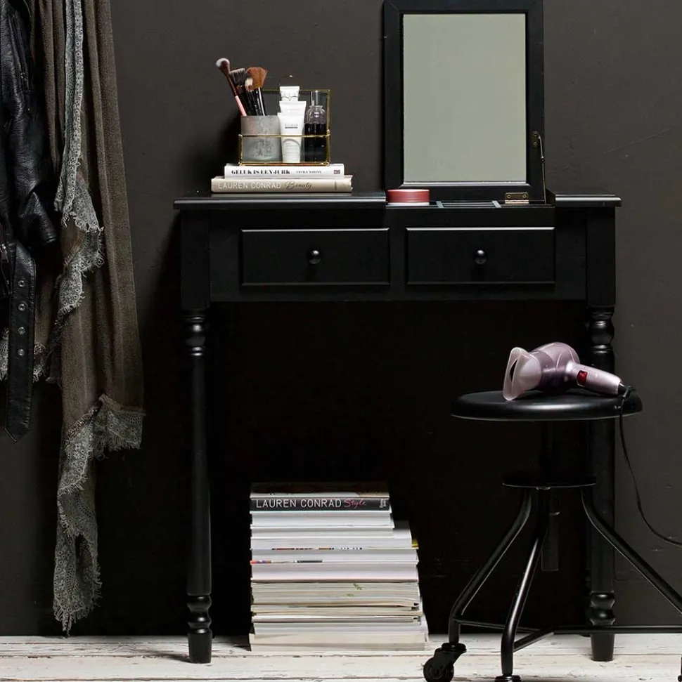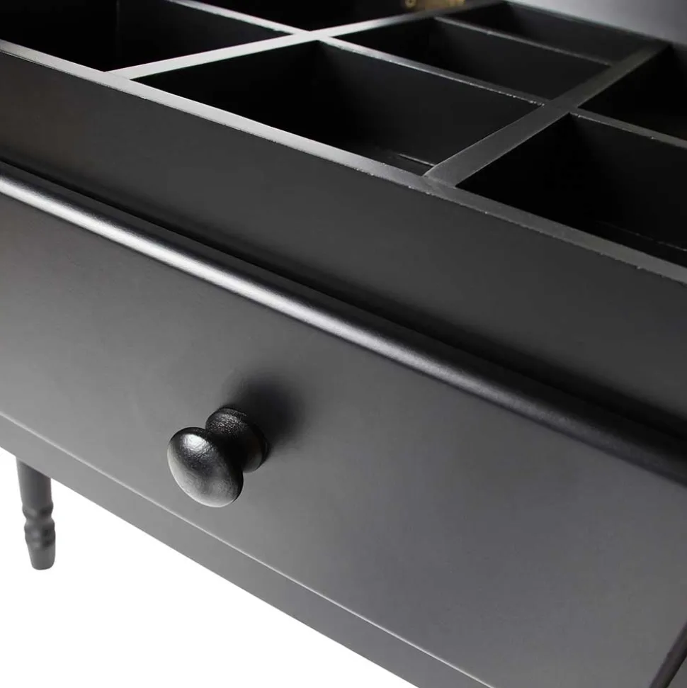 - Kleine Fächer zum Aufbewahren von Schminkutensilien unter dem Spiegel