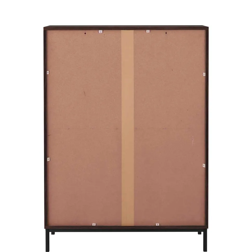 Die Hochkommode „Teleska“ vereint klares skandinavisches Design mit funktionalem Mehrwert. Ihre harmonische Kombination aus warmer Walnuss-Holzoptik und schwarzem Metall verleiht jedem Raum eine wohnliche Atmosphäre. Mit ihrem kompakten, aber großzügigen Stauraumangebot ist sie ideal für das Schlafzimmer, den Flur oder das Wohnzimmer geeignet – überall dort, wo stilvolle Ordnung gefragt ist.