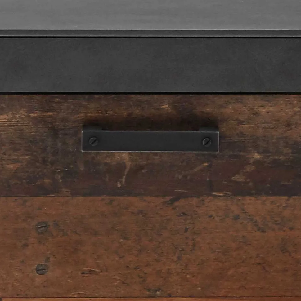 Modernes Design im Industry Look Entdecken Sie die Dielenbank „Timuras“, die sich perfekt in moderne und stilbewusste Wohnambiente einfügt. Mit ihrem Korpus und Gestell in Dunkelgrau kombiniert mit der Front in Altholz-Optik, fügt sie sich nahtlos in den beliebten Industrie- und Loft-Stil ein. Die melaminbeschichtete Oberfläche verleiht der Bank nicht nur eine ansprechende Optik, sondern bietet auch praktische Vorteile wie Kratzfestigkeit und leichte Reinigung.