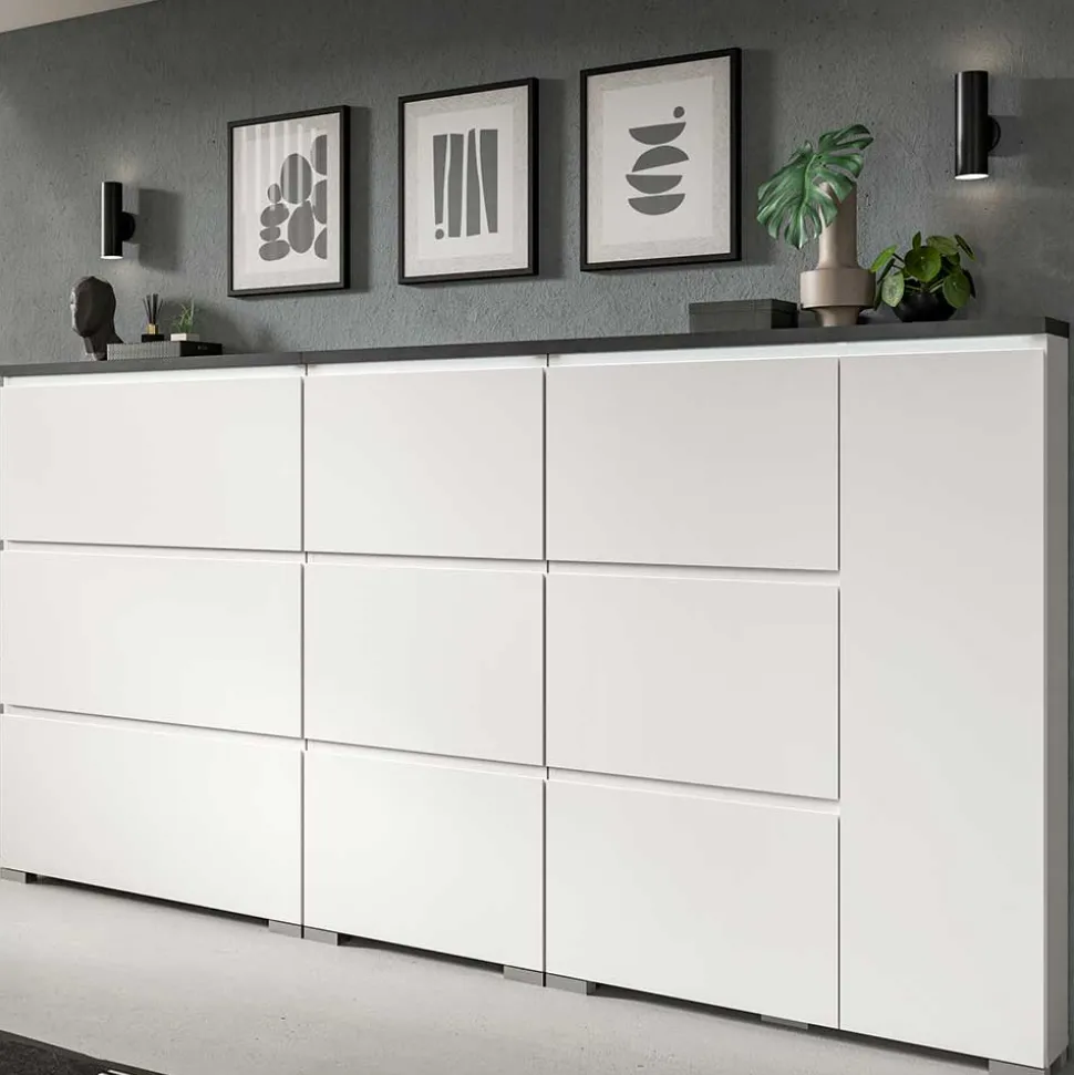 Ein modernes Zuhause verdient moderne Möbel – der Schuhschrank „Suad“ bietet Ihnen genau das. Das moderne Design dieses Möbelstücks besticht durch klare Linien, funktionale Details und eine ästhetische Farbkombination aus Weiß und Dunkelgrau. Modernes Design bedeutet hier: zeitlose Eleganz, die sich durch Minimalismus und Zweckmäßigkeit auszeichnet, und dabei jeden Raum optisch aufwertet.