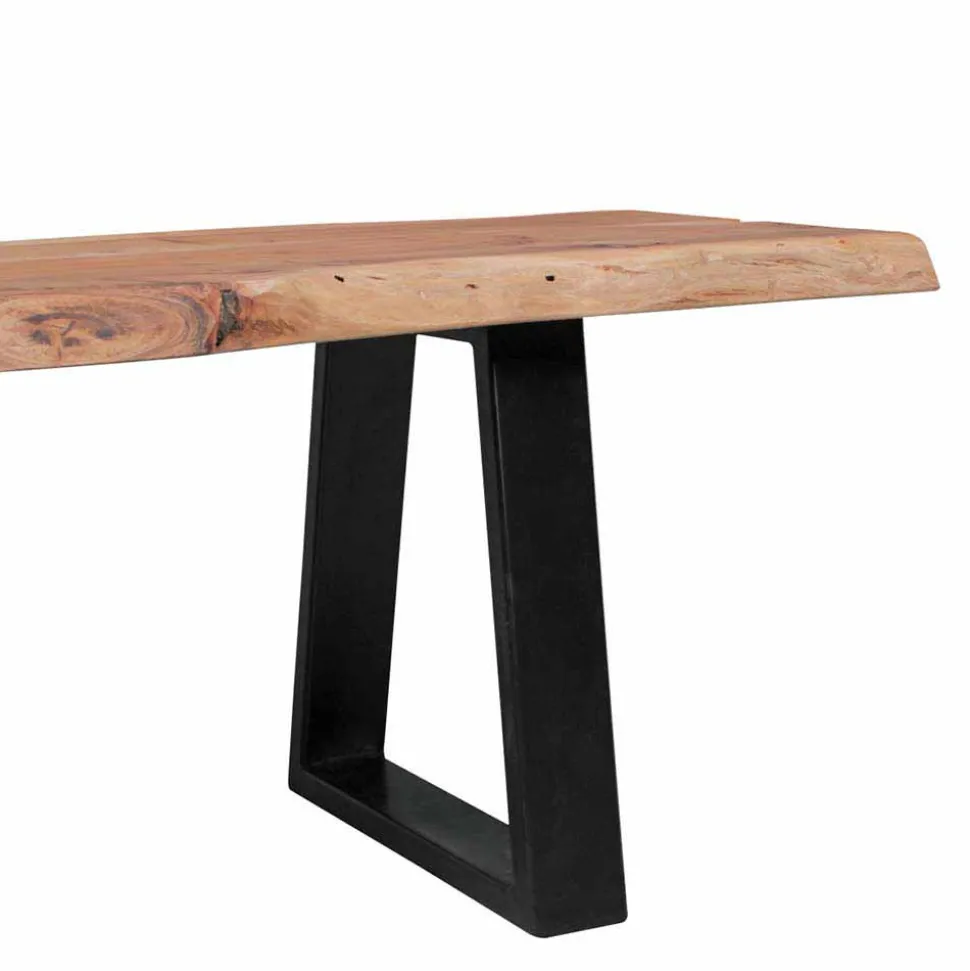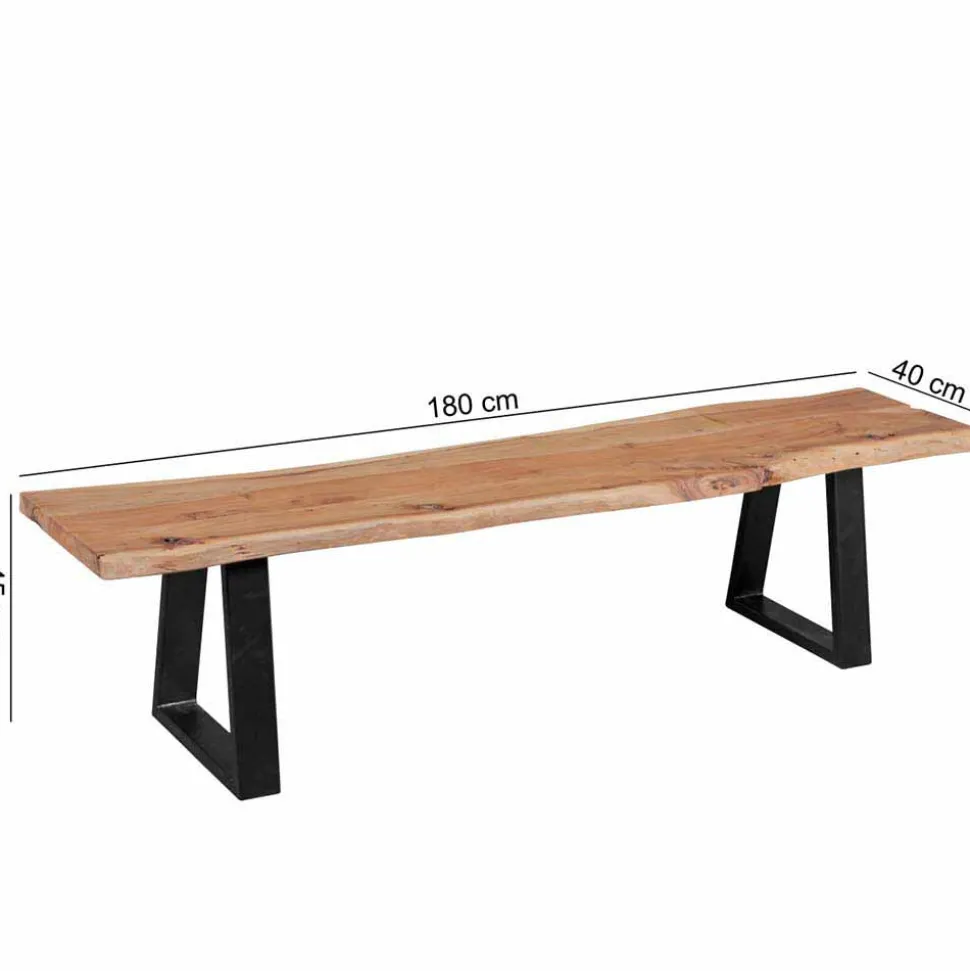 Hergestellt aus massivem Akazienholz, bekannt für seine Haltbarkeit und schönen, auffälligen Maserungen, garantiert die Baumkantenbank „Lussina“ Langlebigkeit und Standhaftigkeit. Akazienholz ist zudem resistent gegen Schädlinge und Witterungseinflüsse, was es ideal für hochwertige Möbelstücke macht. Die Kombination mit dem schwarz lackierten Bügelgestell aus Metall verstärkt nicht nur die Stabilität, sondern fügt auch einen modernen Touch hinzu.