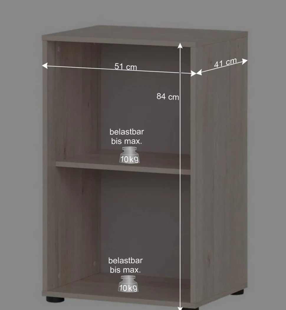 - Zwei Fächer in Ordnerhöhe, fester Boden, bis max. 10 kg belastbar