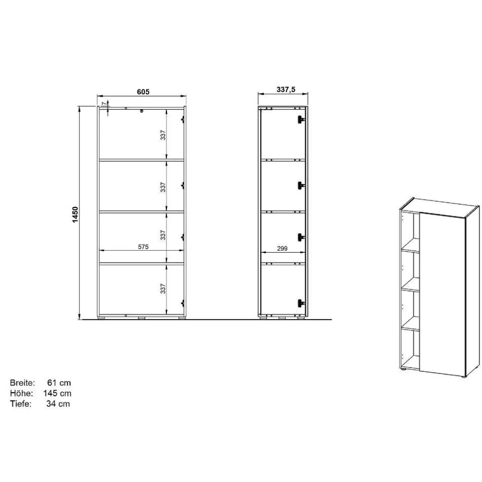 - 61 cm Breit, 145 cm Hoch, 34 cm Tief