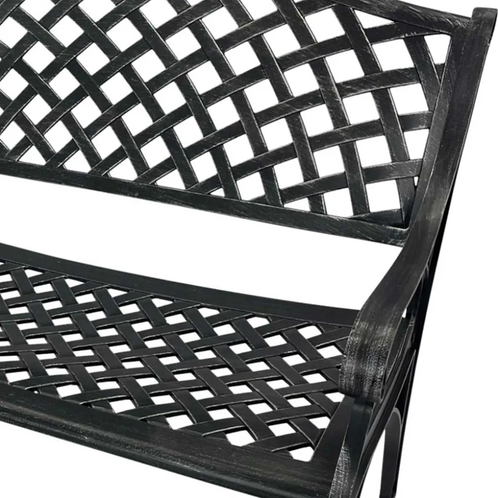 Die Gartenbank „Mora“ wurde aus hochwertigem Aluguss gefertigt, einem Material, das für seine außergewöhnliche Festigkeit und Beständigkeit bekannt ist. Aluguss bietet den entscheidenden Vorteil, dass es besonders widerstandsfähig gegen äußere Einflüsse ist, wie etwa Feuchtigkeit, UV-Strahlung oder extreme Temperaturen. So können Sie sicher sein, dass Ihre Bank viele Jahre lang in einwandfreiem Zustand bleibt – perfekt für den langfristigen Einsatz im Freien.