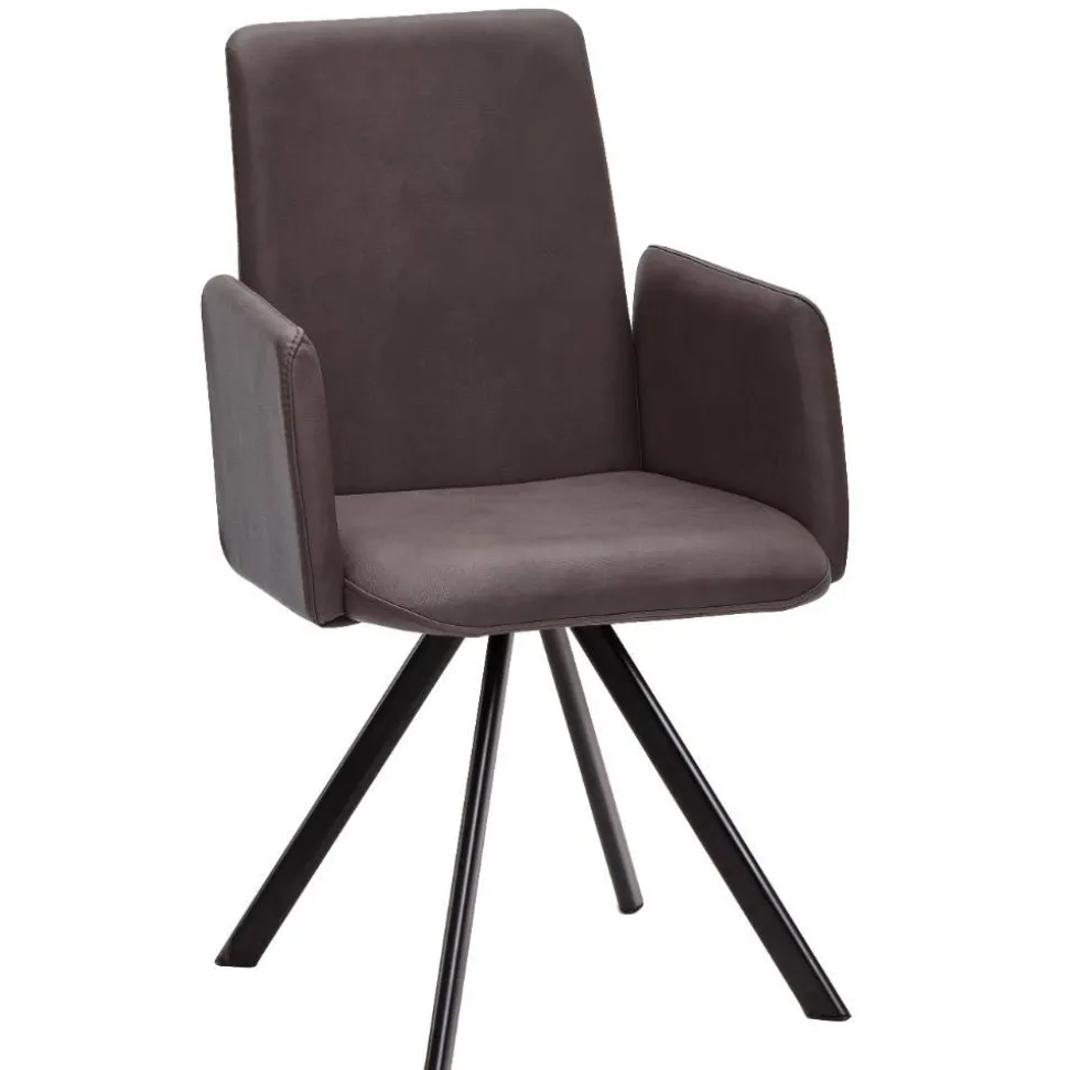 Mit dem Armlehnen-Polsterstuhl „Sagavi“ in Dunkelbraun und Schwarz zieht ein Möbelstück bei Ihnen ein, das gekonnt modernes Design mit behaglichem Komfort verbindet. Die harmonische Farbkombination aus warmem Dunkelbraun und kühlem Schwarz verleiht diesem Stuhl eine markante, aber dennoch zurückhaltende Ausstrahlung – ideal für stilvolle Essbereiche, elegante Besprechungsräume oder gemütliche Leseecken. Dank der klaren Linienführung und des leicht abgespreizten Metallgestells fügt sich „Sagavi“ mühelos in verschiedenste Interieurs ein – von industriell über modern bis hin zu zeitlos schlicht.
