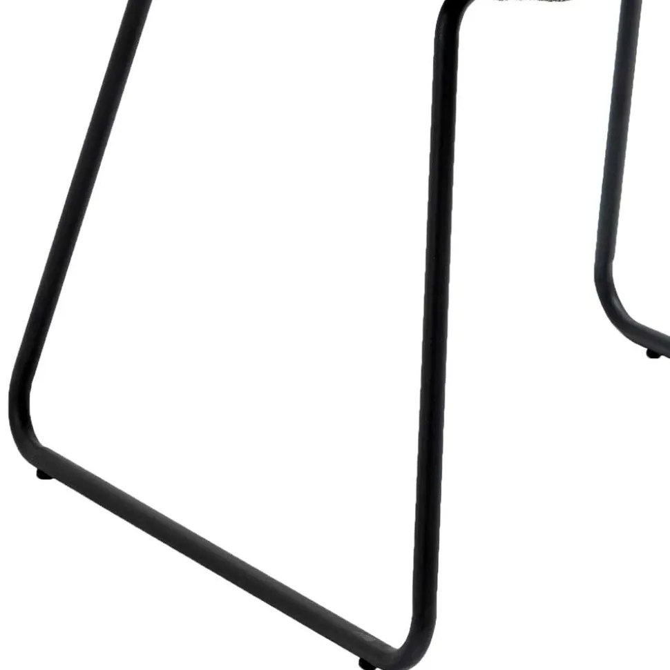 - Standsicheres, schwarz pulverbeschichtetes Metallbügelgestell mit Bodenschonern