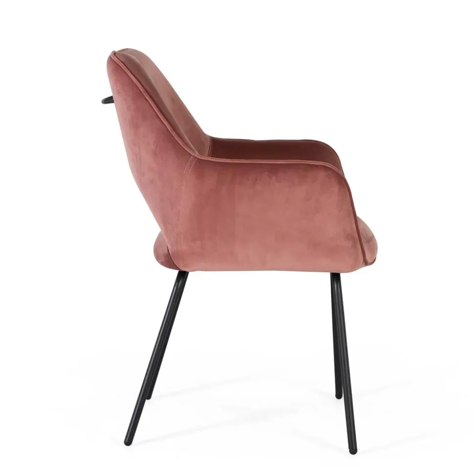 Der Armlehnenstuhl „Flawia“ vereint ansprechendes Design mit außergewöhnlichem Komfort. In den Farben Altrosa und Schwarz gehalten, ist dieser Stuhl ein echtes Highlight in Ihrem Zuhause. Der Samtbezug sorgt für ein luxuriöses Gefühl, während das schwarze Metallgestell eine zeitgemäße Note verleiht. Egal, ob im Esszimmer, am Schreibtisch oder als zusätzlicher Komfort in der Lounge-Ecke – dieser Stuhl passt sich mühelos Ihrem Raumkonzept an und setzt modische Akzente.