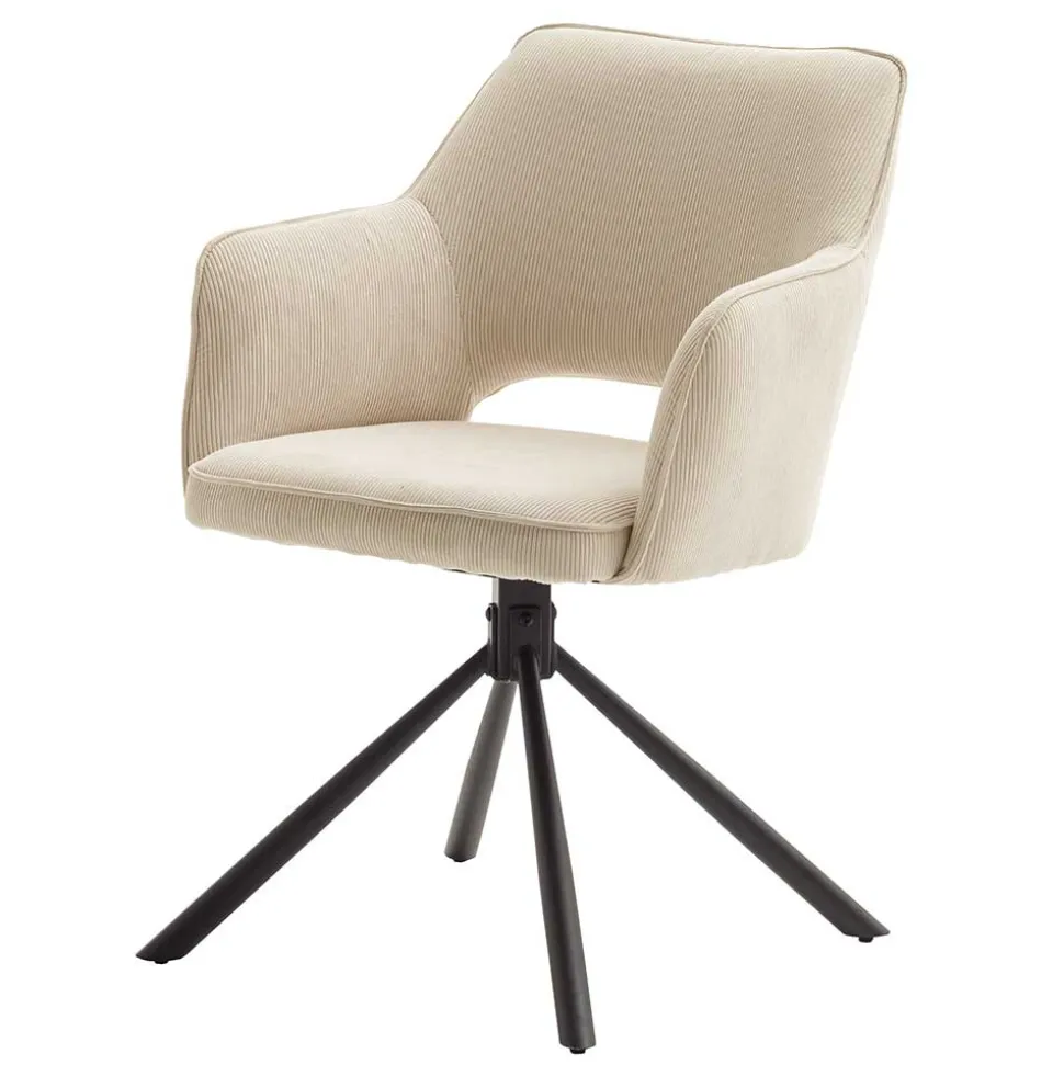 Der Armlehnenstuhl „Makimona“ in einem edlen Cremeton bringt einen Hauch von Luxus in Ihr Zuhause. Dieser elegante Polsterstuhl mit Armlehnen und Drehgestell ist ein wahrer Blickfang und überzeugt durch sein wohnlich-gemütliches Design mit modernem Esprit und zeitlosem Charme. Ob beim Essen, bei Gesprächen oder einfach beim Entspannen – auf dem „Makimona“ verweilt man gerne länger und genießt die Zeit mit Familie und Freunden.