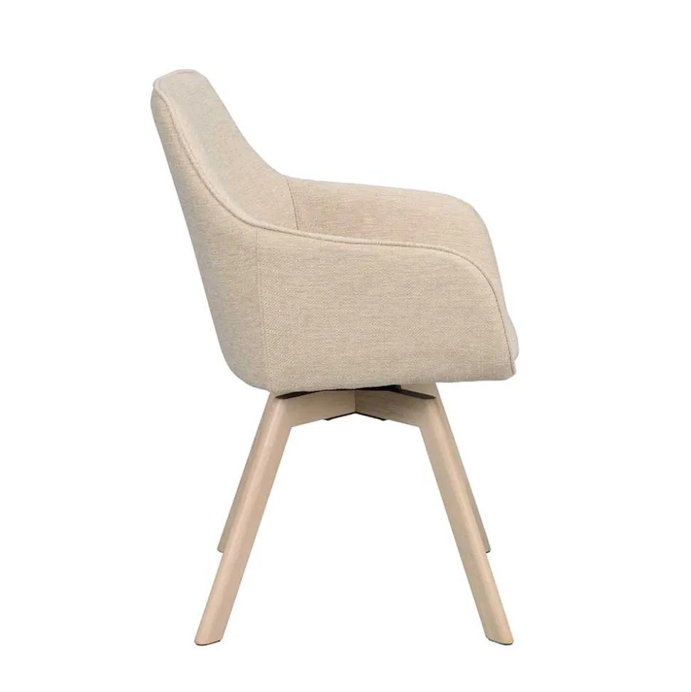 Setzen Sie auf wohnliches Flair und skandinavisches Design mit dem Armlehnenstuhl „Systrem“. Mit seinem cremeweißen Bezug aus hochwertigem Webstoff und dem Gestell aus massiver Eiche in White Wash Finish verbindet dieser Stuhl Natürlichkeit mit zeitgemäßer Ästhetik. Ob für den Essbereich oder als Akzentstück – der „Systrem“ ist eine vielseitige Ergänzung, die Behaglichkeit und Stil in Ihren Alltag bringt.