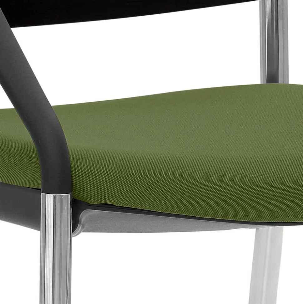 - Stabiler Konferenzstuhl in Oliv, Schwarz und Chromfarben