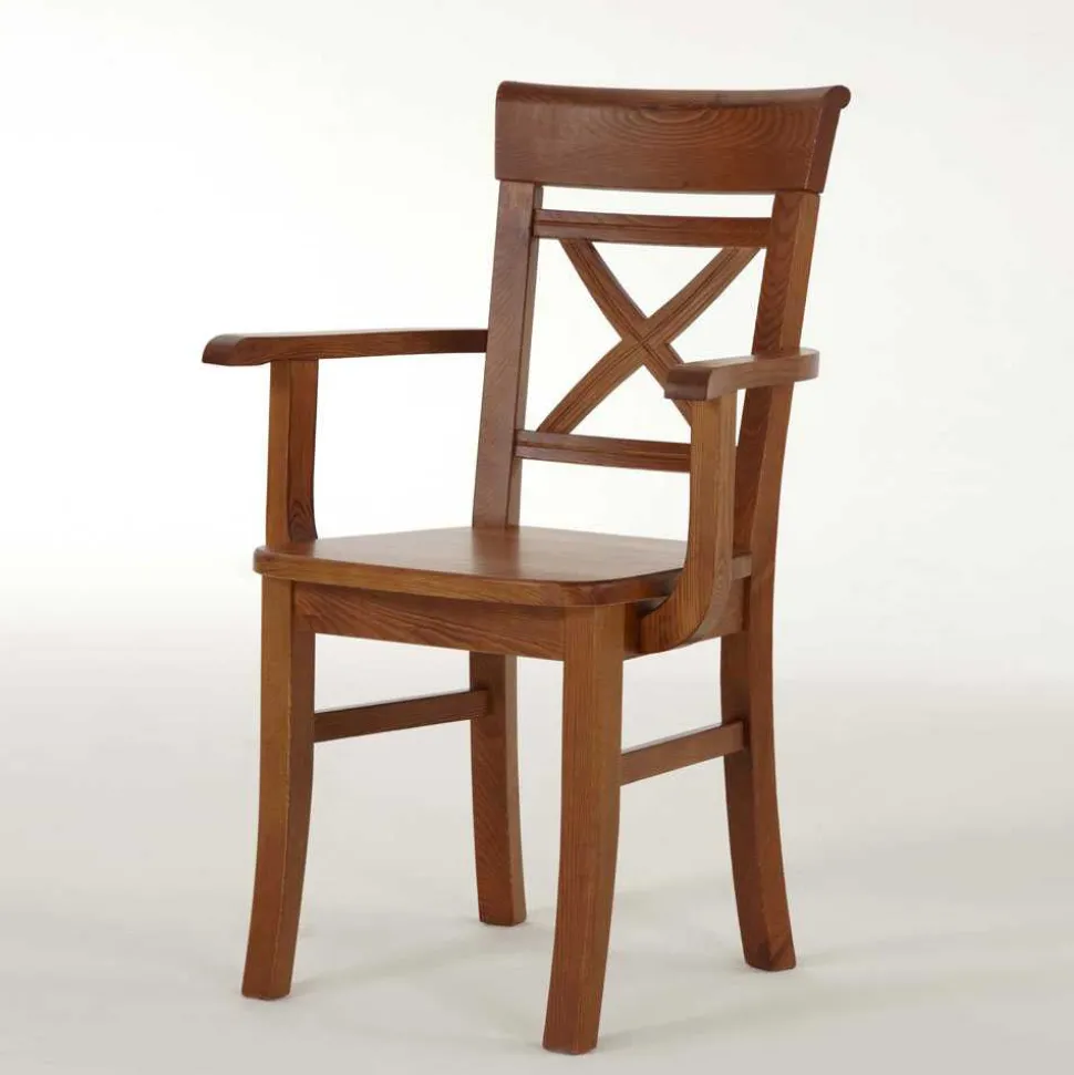 Ein Hauch von Ländlichkeit und Wärme zieht mit den Armlehnstühlen „Bistrita“ in Ihr Zuhause ein. Diese Stühle sind mehr als nur Sitzmöbel – sie sind ein Statement für Qualität und Stil. Gefertigt aus massivem, nordischem Kiefernholz, bestechen sie durch ihre Robustheit und Langlebigkeit. Die besonderen Eigenschaften der Kiefer, wie ihre charakteristische Maserung und Festigkeit, machen jeden Stuhl zu einem Unikat.