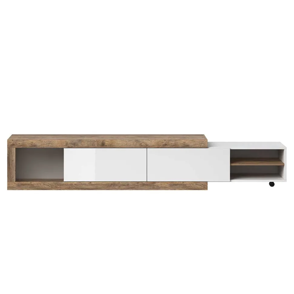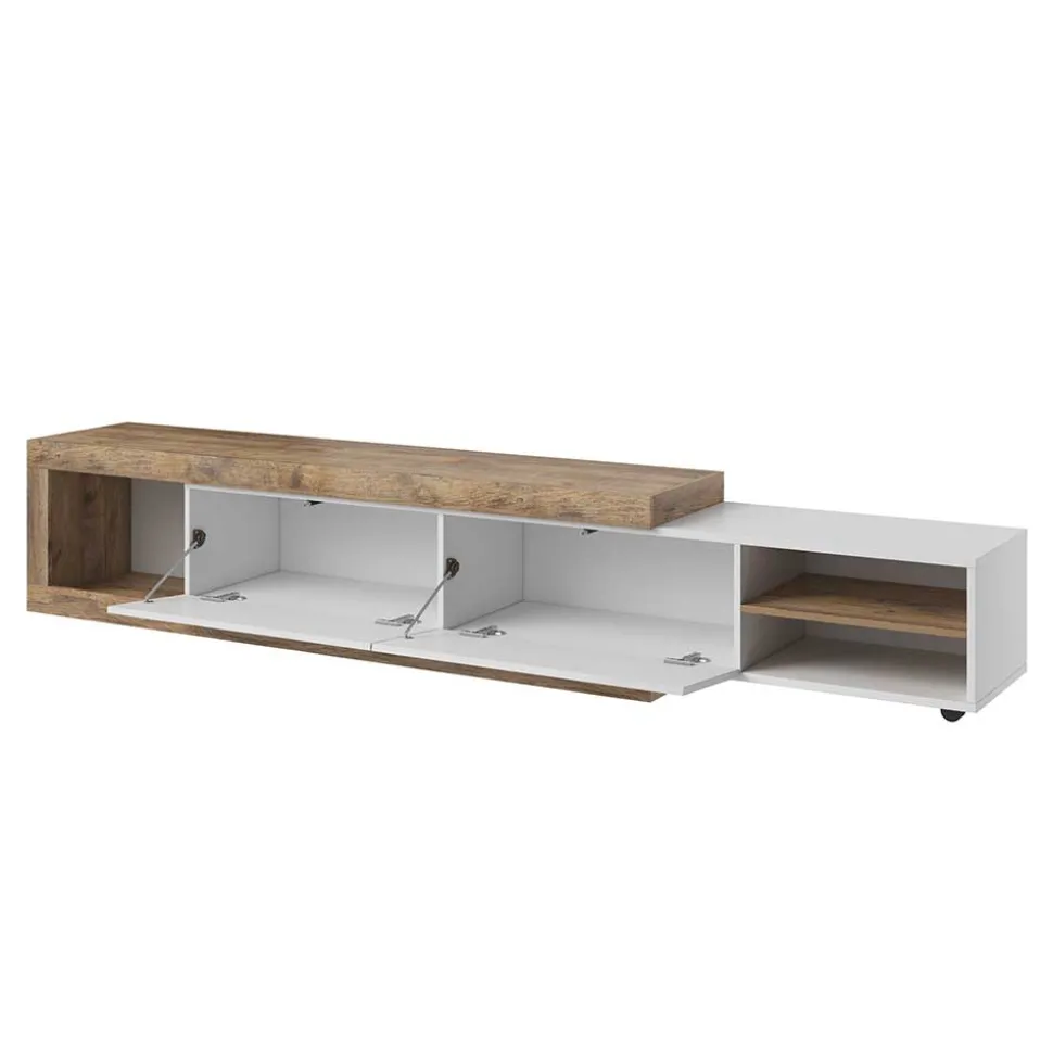 - Geräumiges TV Lowboard in Weiß und Holzoptik Eiche verwittert