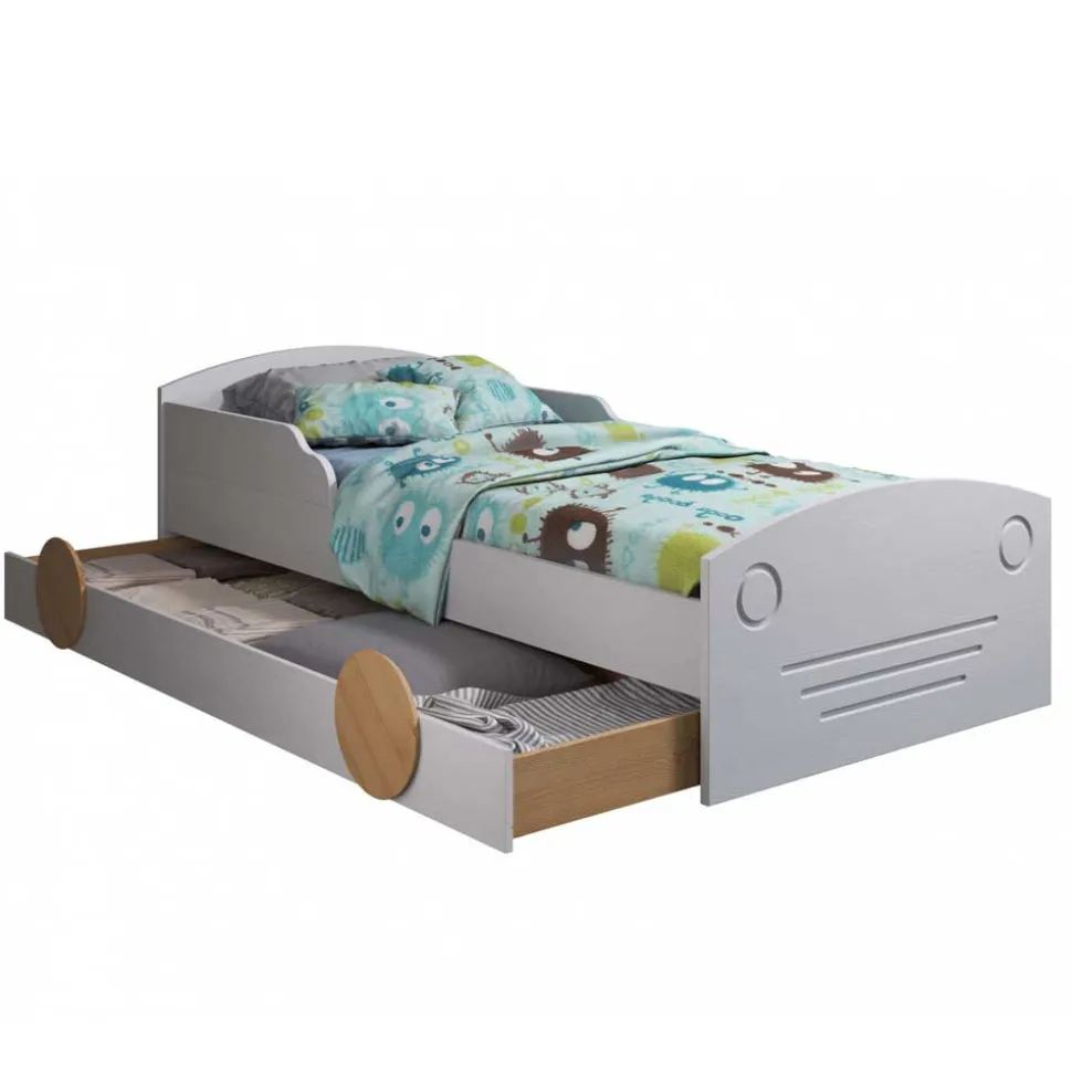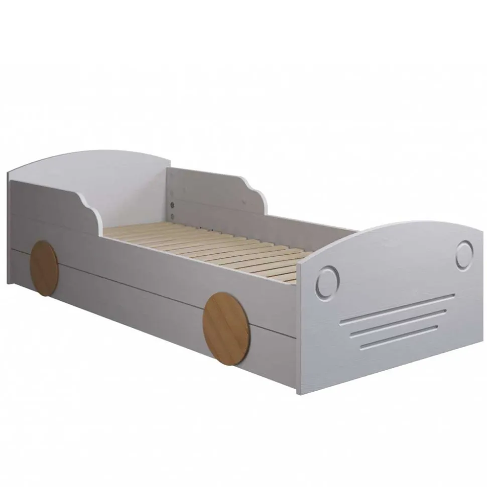 Mit seinem charmanten Design in Form eines Autos weckt das Autobett „Vision“ die Fantasie der Kleinen. Die dezenten Farben und die detailverliebte Gestaltung sorgen für eine Atmosphäre, in der sich Ihr Kind wohlfühlt und gerne zur Ruhe kommt. Gleichzeitig garantiert das kindgerechte Design maximale Sicherheit: Die Wangen an Kopf- und Fußende sorgen für Stabilität, während der seitliche Rausfallschutz am Kopfende die Kleinen vor dem Herausfallen schützt.
