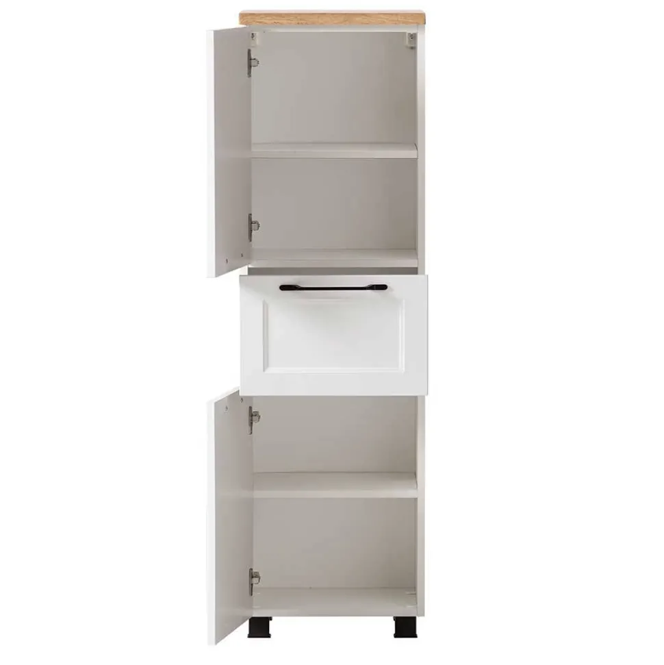 - Schicker Badschrank in Weiß und Wildeichefarben