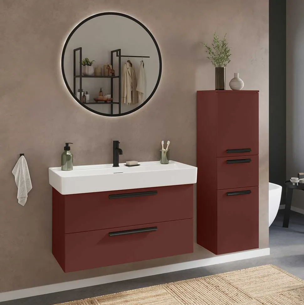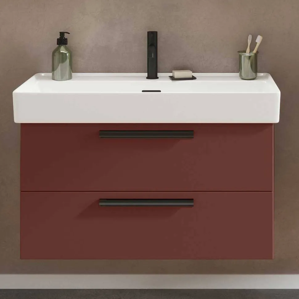 - Schicker Waschtischschrank in Dunkelrot