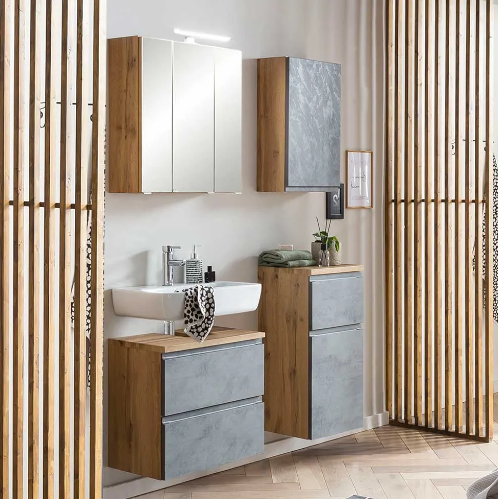 - Trendstarke Badmöbel in Betongrau und Wildeichefarben