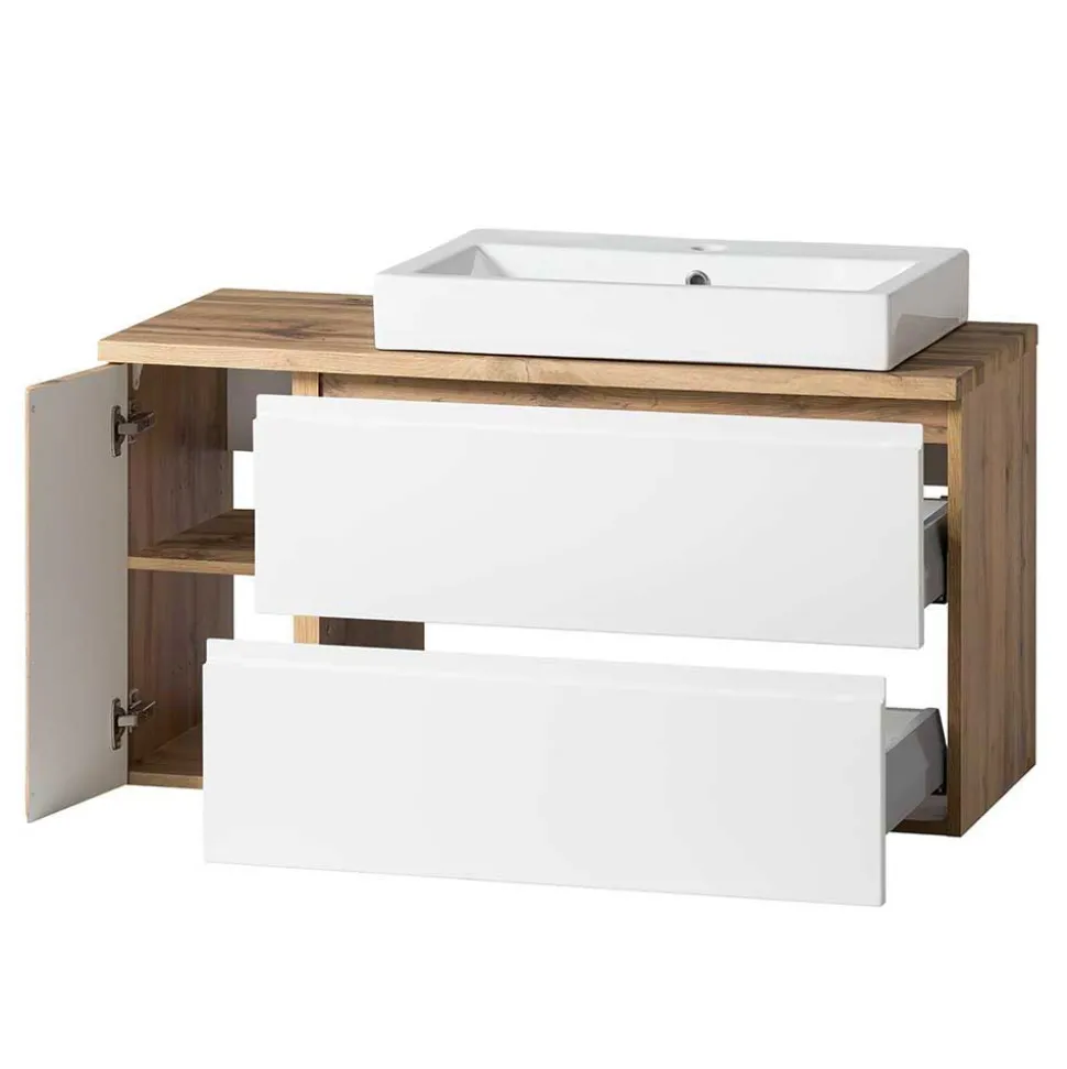 - Aktuelle Badmöbel in Weiß und Wildeichefarben
