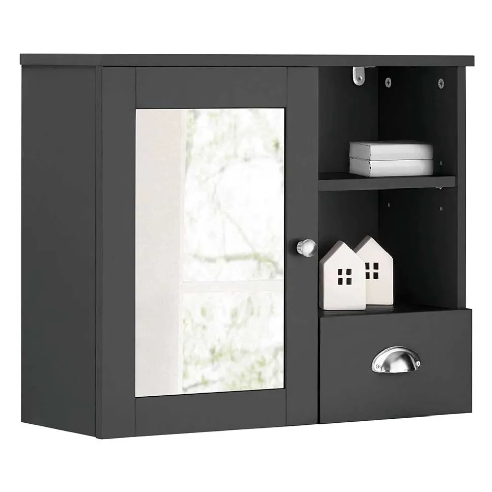 - Aus Holzwerkstoff (Spanplatte) und Spiegelglas hergestellt