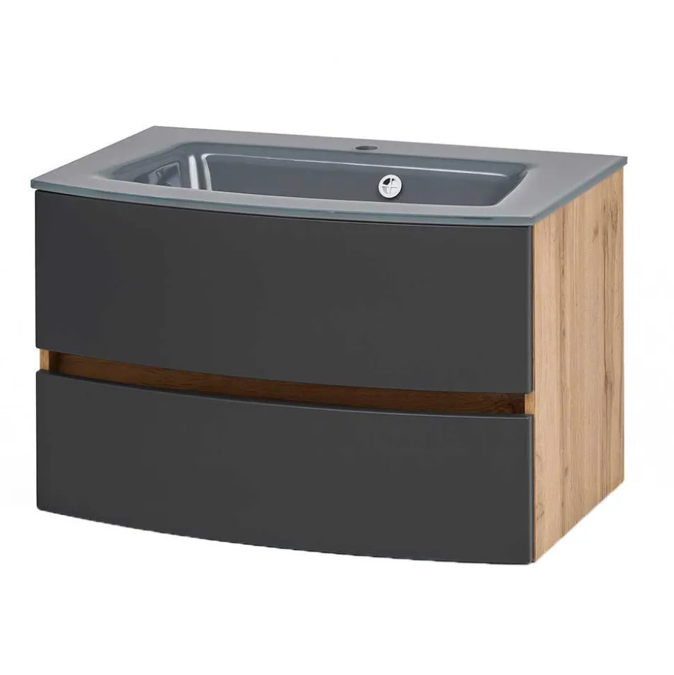- Hervorragende Badmöbel in Grau und Wildeichefarben