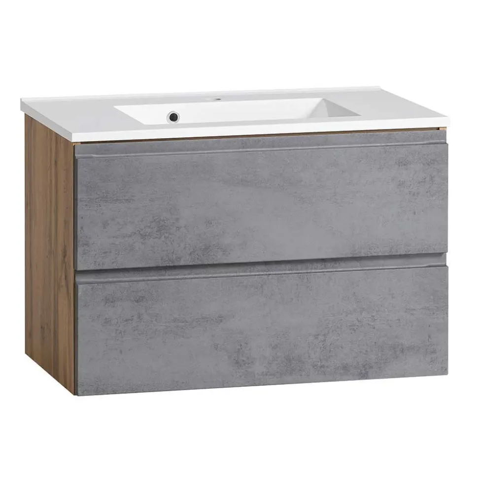 - Schicke Badmöbel in Betongrau und Wildeichefarben