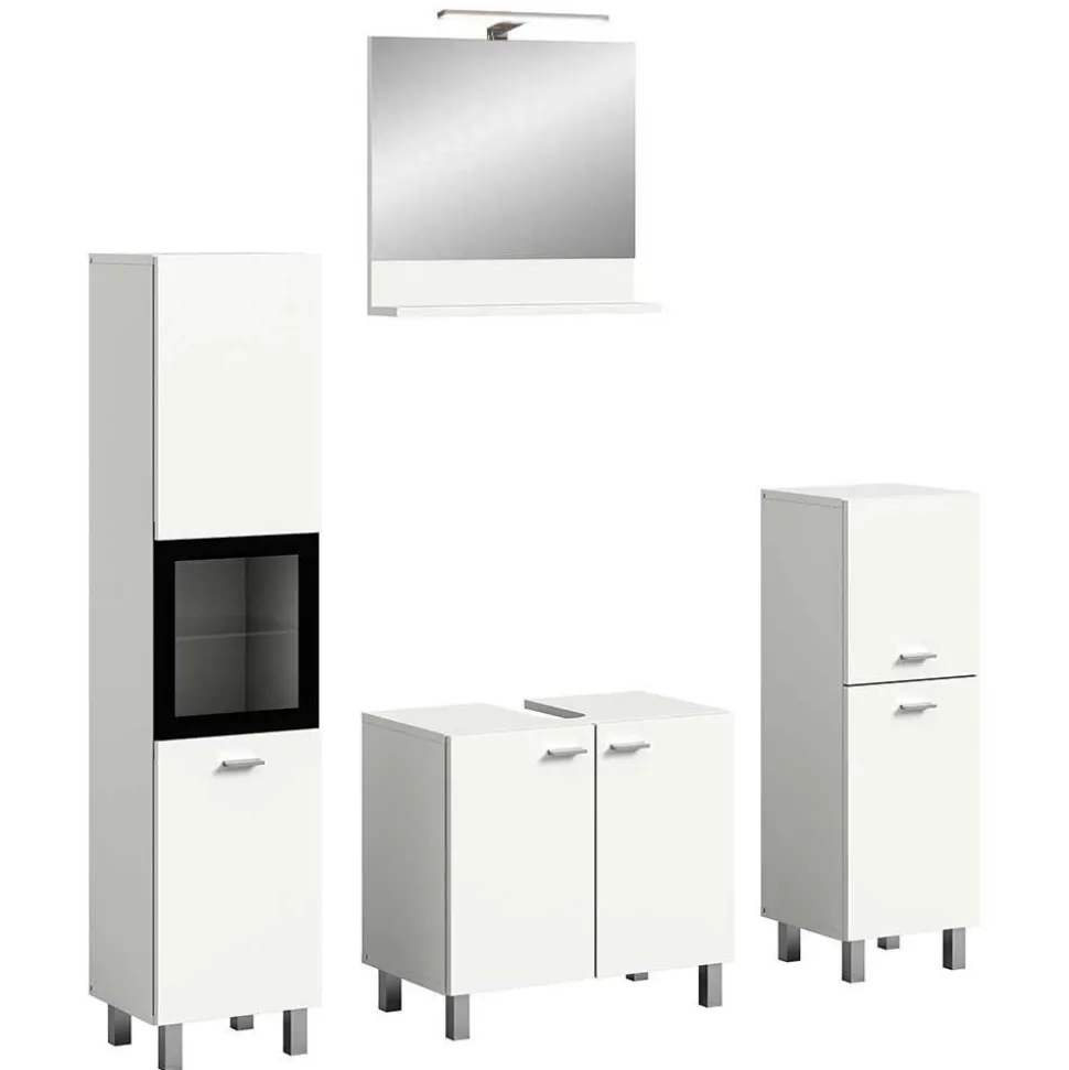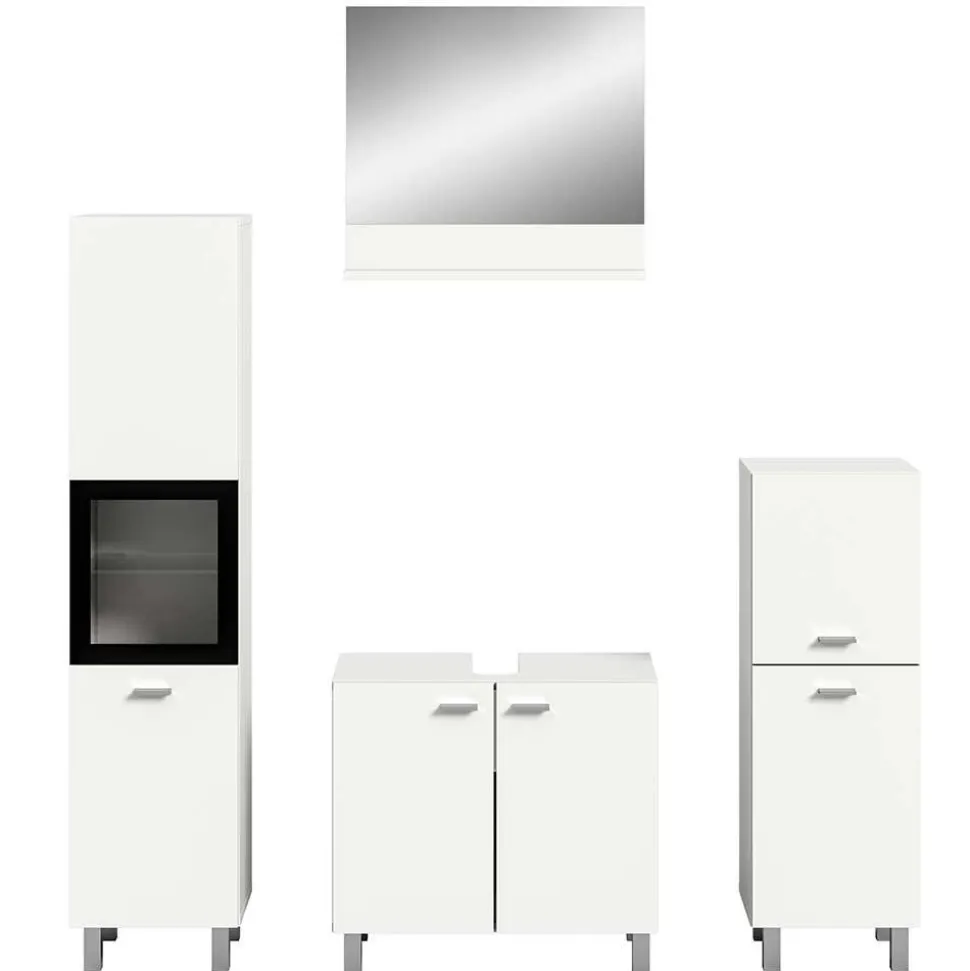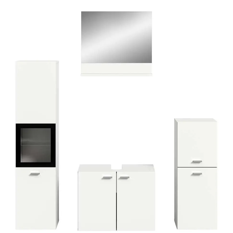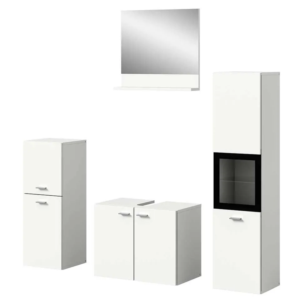 Die Badmöbel-Kombi „Harmone“ verbindet stilvolles Design mit praktischer Funktionalität und schafft ein harmonisches Gesamtbild im Badezimmer. Dieses vierteilige Set in Weiß bietet eine zeitgemäße Lösung mit großzügigem Stauraum und hochwertigen Materialien.