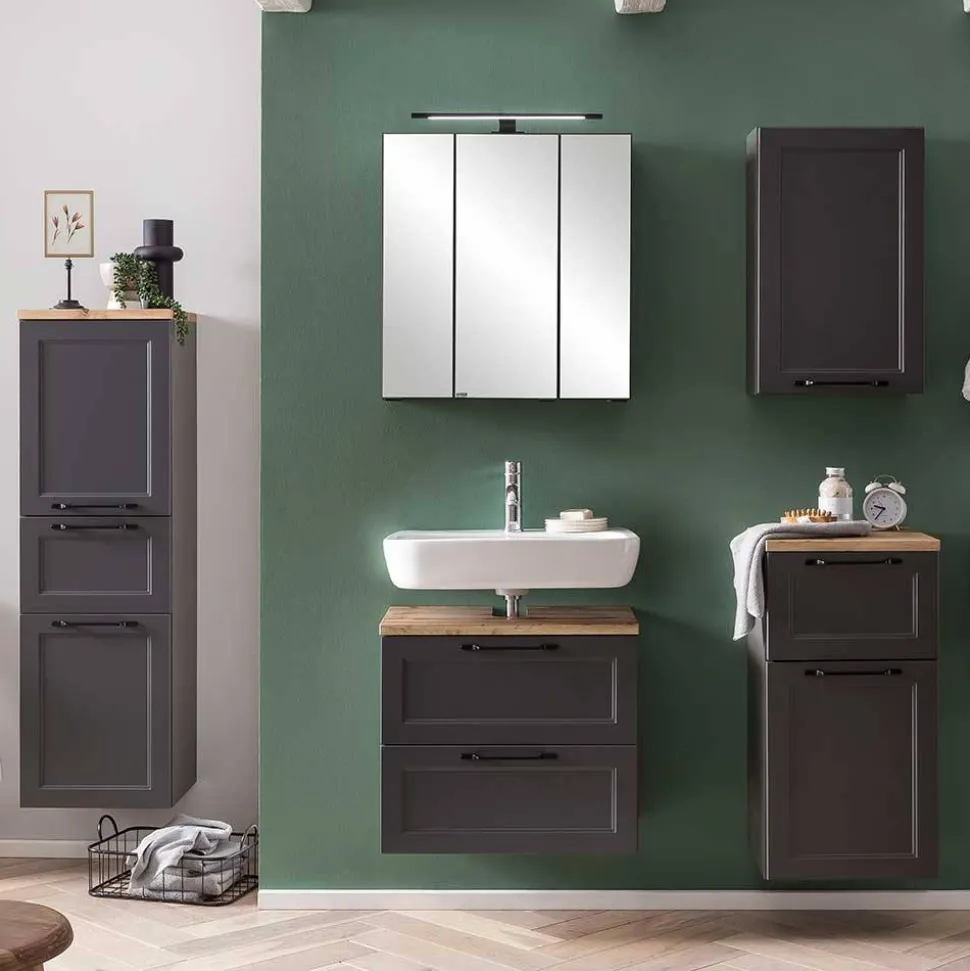 - Angesagtes Badmöbel Set in Dunkelgrau und Wildeichefarben