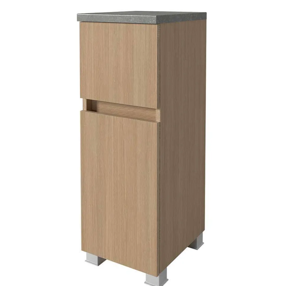 Unterschrank: Der Unterschrank misst 30x80x35 cm und bietet mit einer Schublade und einer Tür mit verstellbarem Einlegeboden ausreichend Stauraum. Inklusive Füßen beträgt die Höhe des Unterschranks 85 cm. Gewicht: ca. 17,7 kg.