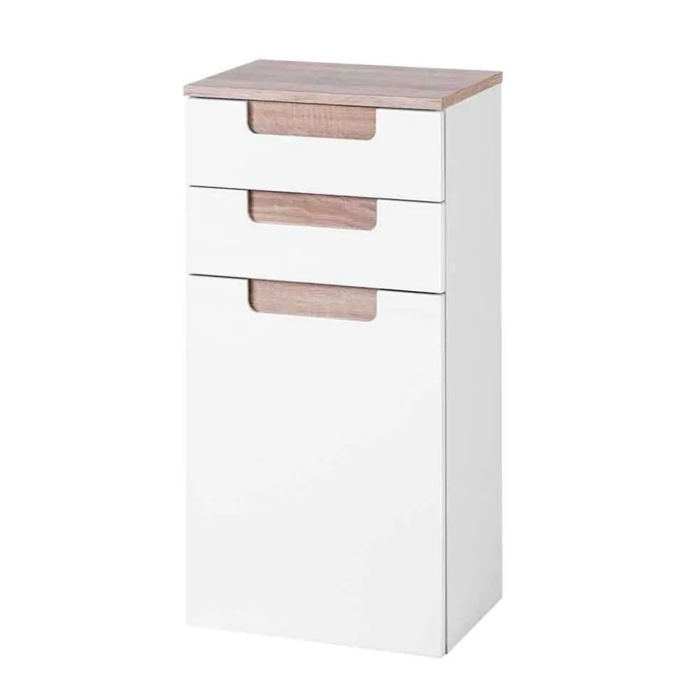 Viel Platz auf wenig Raum – genau das bietet dieses Set. Der Hängeschrank mit beidseitig montierbarer Tür und stabilem Einlegeboden hält Handtücher, Pflegeprodukte oder Kosmetika stets griffbereit. Im Hochschrank warten zwei Türen, drei variable Einlegeböden und eine leichtgängige Schublade mit robustem Metallauszug auf ihren Einsatz. Hier findet wirklich alles seinen Platz – von Vorräten bis hin zu Accessoires.