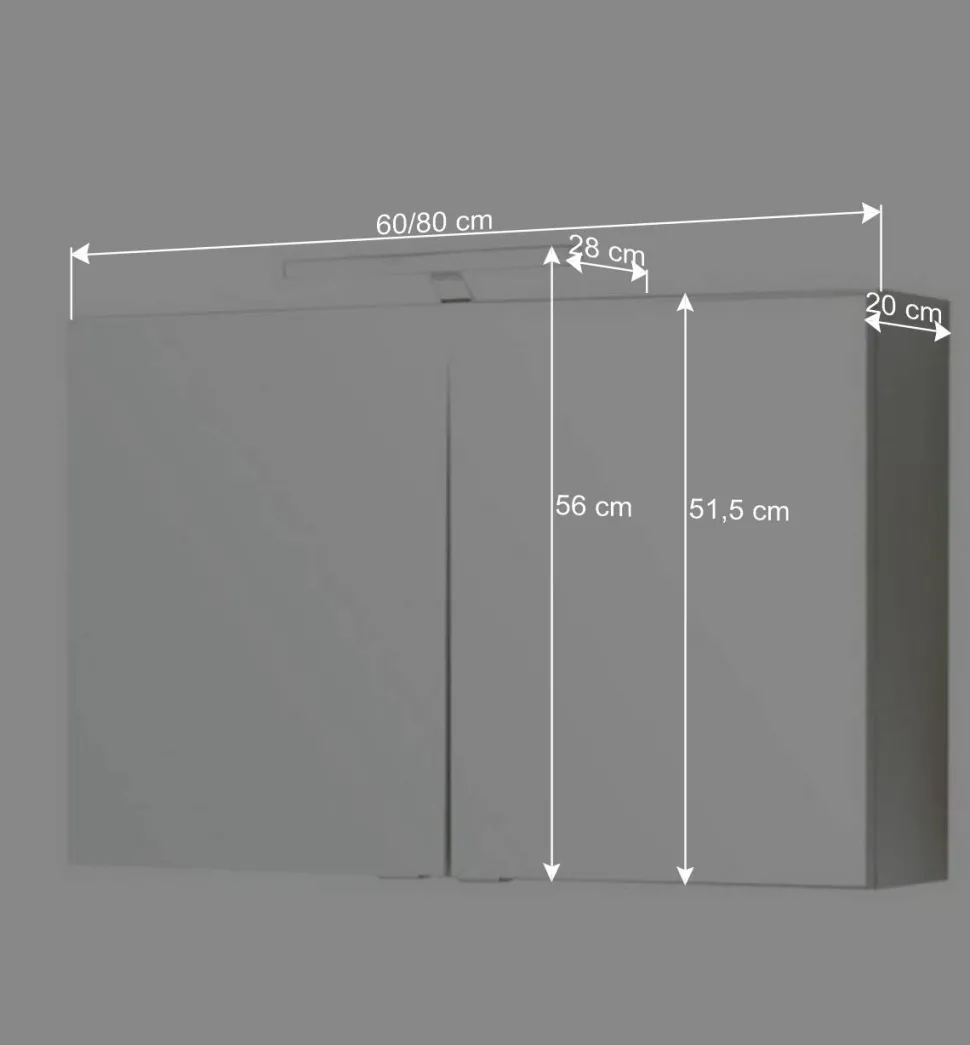- Maße ohne Beleuchtung: BxHxT: 60×51,5x20cm