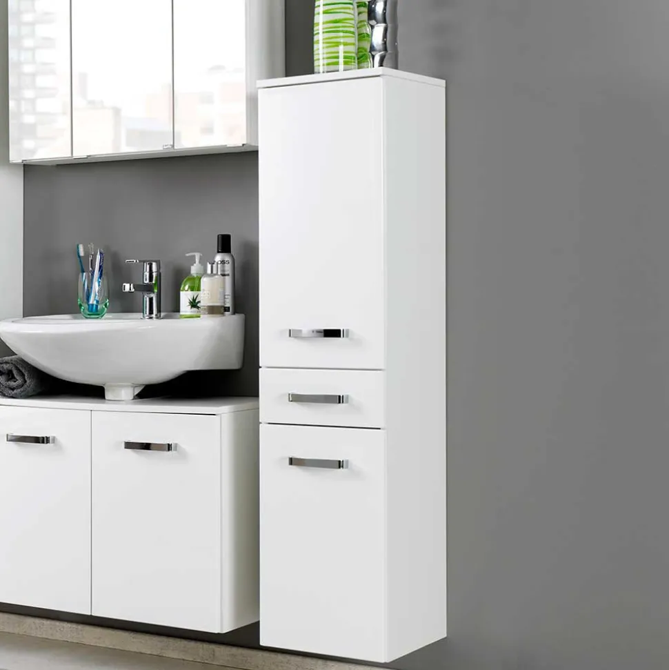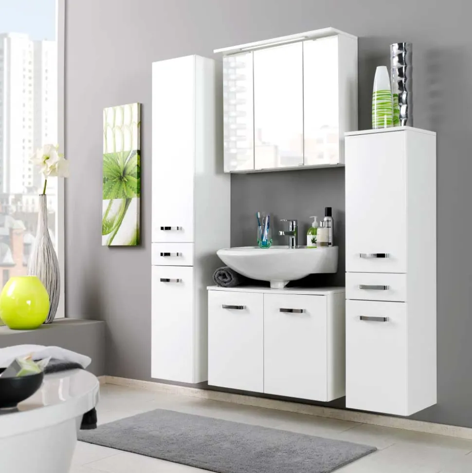 - Vorteilsset bestehend aus 3-D-Spiegelschrank, Unterbeckenschrank, Midischrank und Hochschrank