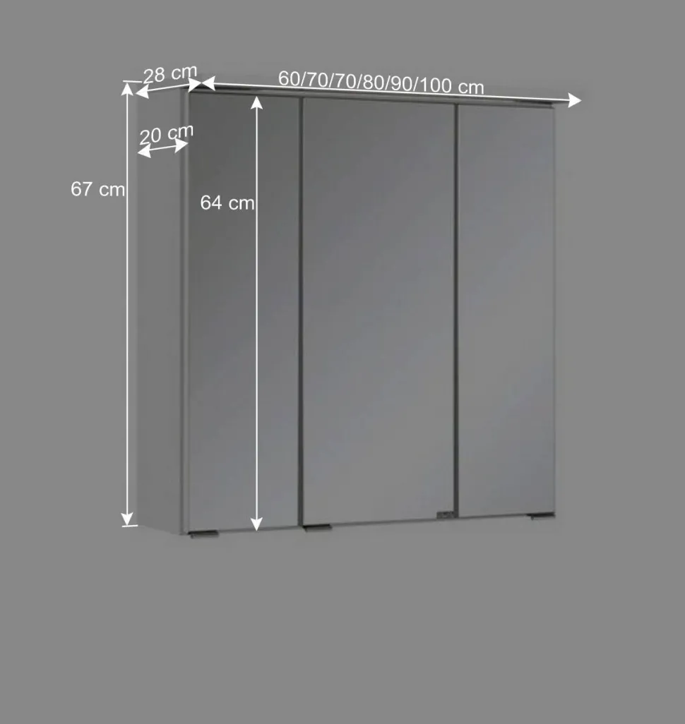 - Maße mit Aufbauleuchte: BxHxT: 60/70/80/90/100x67x28 cm