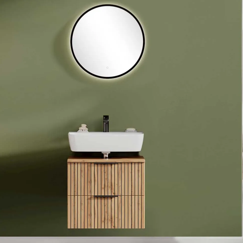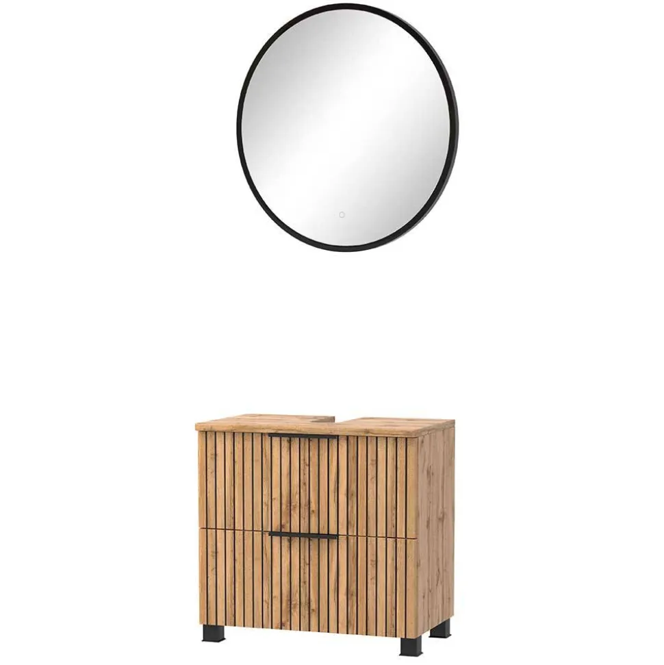 - Klasse Badmöbel in Wildeichefarben und Schwarz