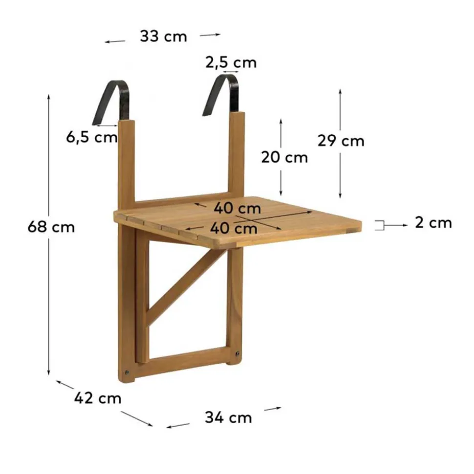 - Praktischer Balkon Klapptisch in Akaziefarben
