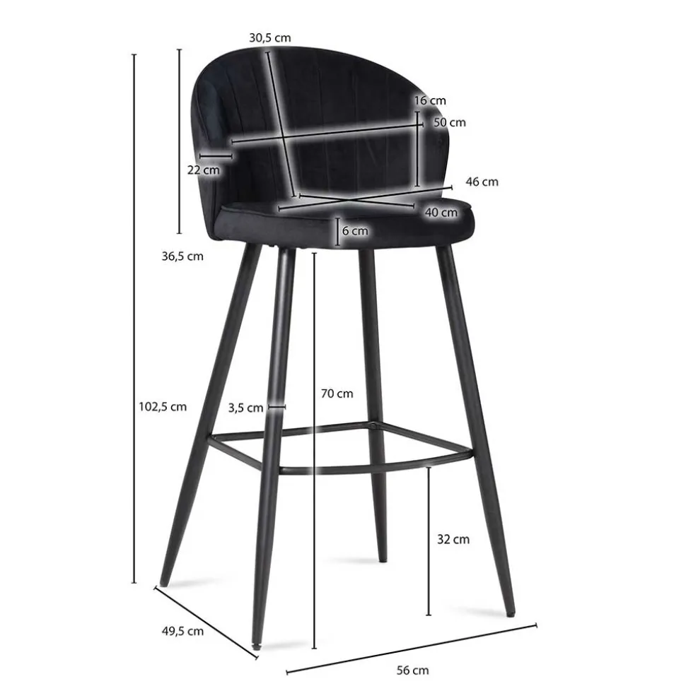Der Bezug aus samtweichem Stoff (100 % Polyester) sorgt nicht nur für eine angenehme Haptik, sondern auch für eine pflegeleichte Handhabung im Alltag. Die Polsterung aus Schaumstoff lädt zu langen Abenden am Tisch oder an der Bar ein, während die ergonomisch geformte Schale des Stuhls den Körper stützt und für bestmöglichen Komfort sorgt. Das stabile, lackierte Metallgestell bietet nicht nur die nötige Robustheit, sondern garantiert auch eine lange Lebensdauer. Eine praktische Fußablage macht das Sitzen auf diesem Barstuhl noch bequemer.