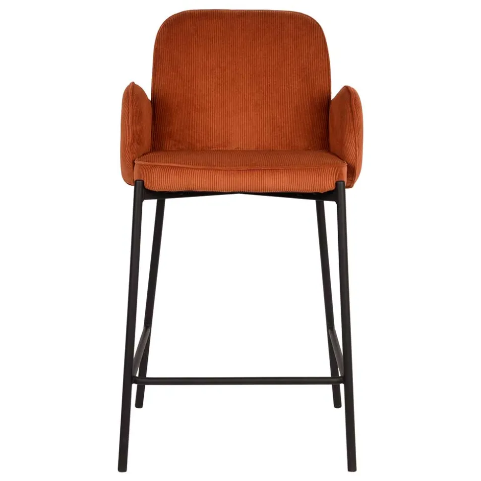Der robuste Cordbezug aus 100 % Polyester in einer warmen Rostfarbe unterstreicht den charmanten Retro-Look und sorgt für eine behagliche Haptik. Cord ist nicht nur unglaublich strapazierfähig, sondern auch pflegeleicht und unempfindlich gegenüber täglichen Gebrauchsspuren – ideal für einen Barhocker, der regelmäßig genutzt wird. Der Stoff verleiht dem „Benede“ eine interessante Textur und lässt ihn modern und zugleich zeitlos wirken.